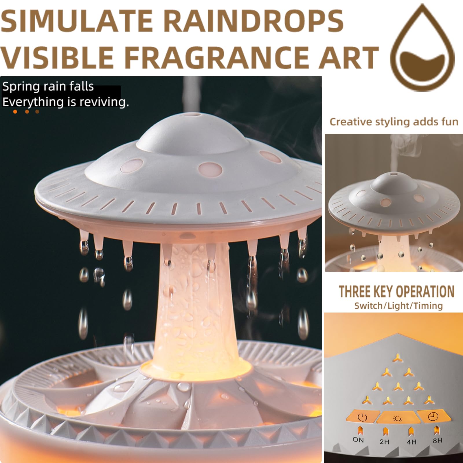 - Humidifier & Aromatherapy Diffuser: The latest raindrop humidifier can be used as an air humidifier and essential oil diffuser. The room humidifier uses high-frequency ultrasonic vertical atomization to send dispersed and diffused water mist to high places. Moisturizing Spray The fine texture can improve air quality, relieve study and work stress, and soothe your mood. Helps improve breathing and sleep, and reduce skin dehydration caused by dry weather.