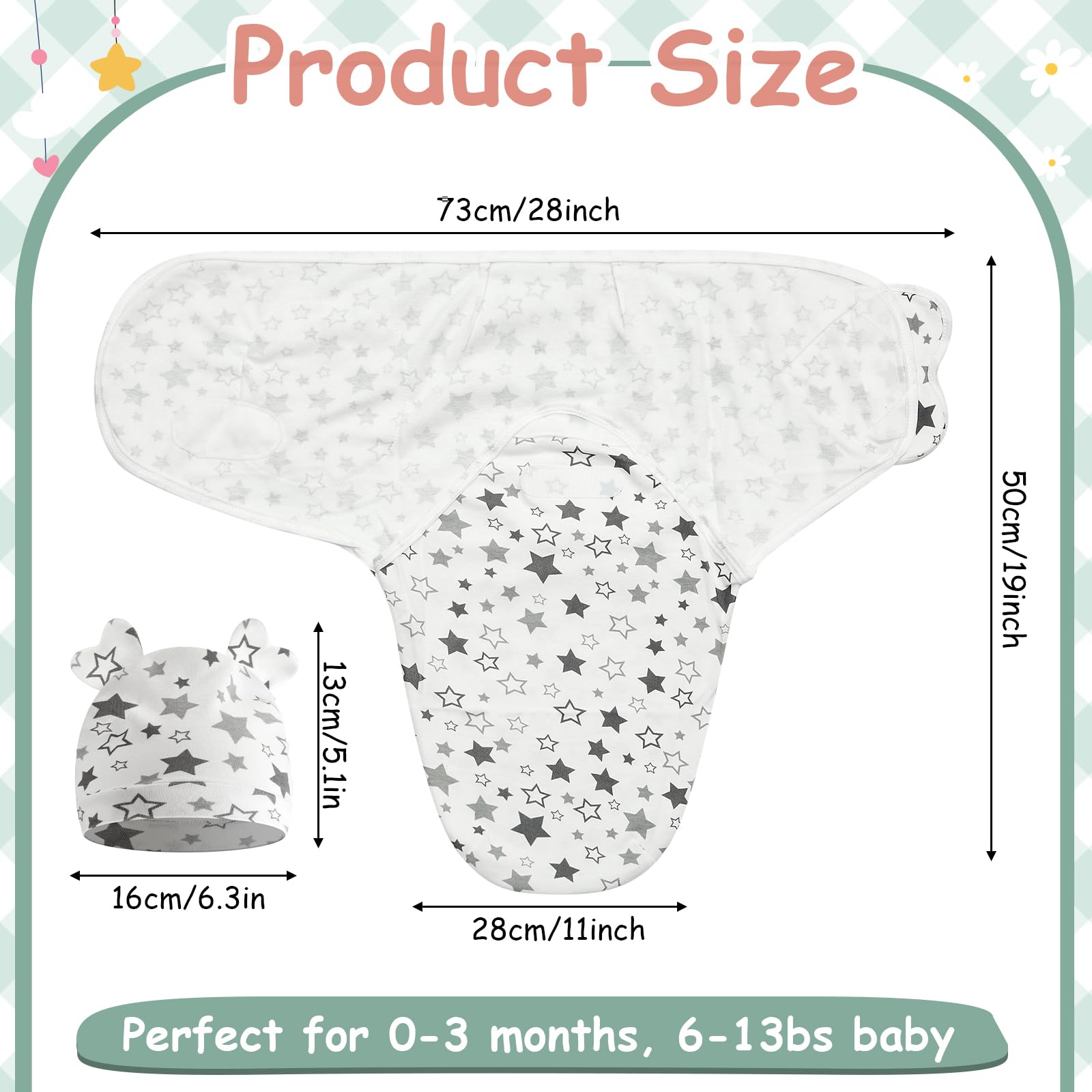 - Adjustable Fit: the newborn swaddle and hats are thoughtfully designed to fit babies weighing 6-13 lbs, and aged 0-3 months; Each swaddle measure about 28.74 x 19.69 inches/ 73 x 50 cm; The adjustable nature of the set accommodates your growing baby, providing a comfortable fit every time