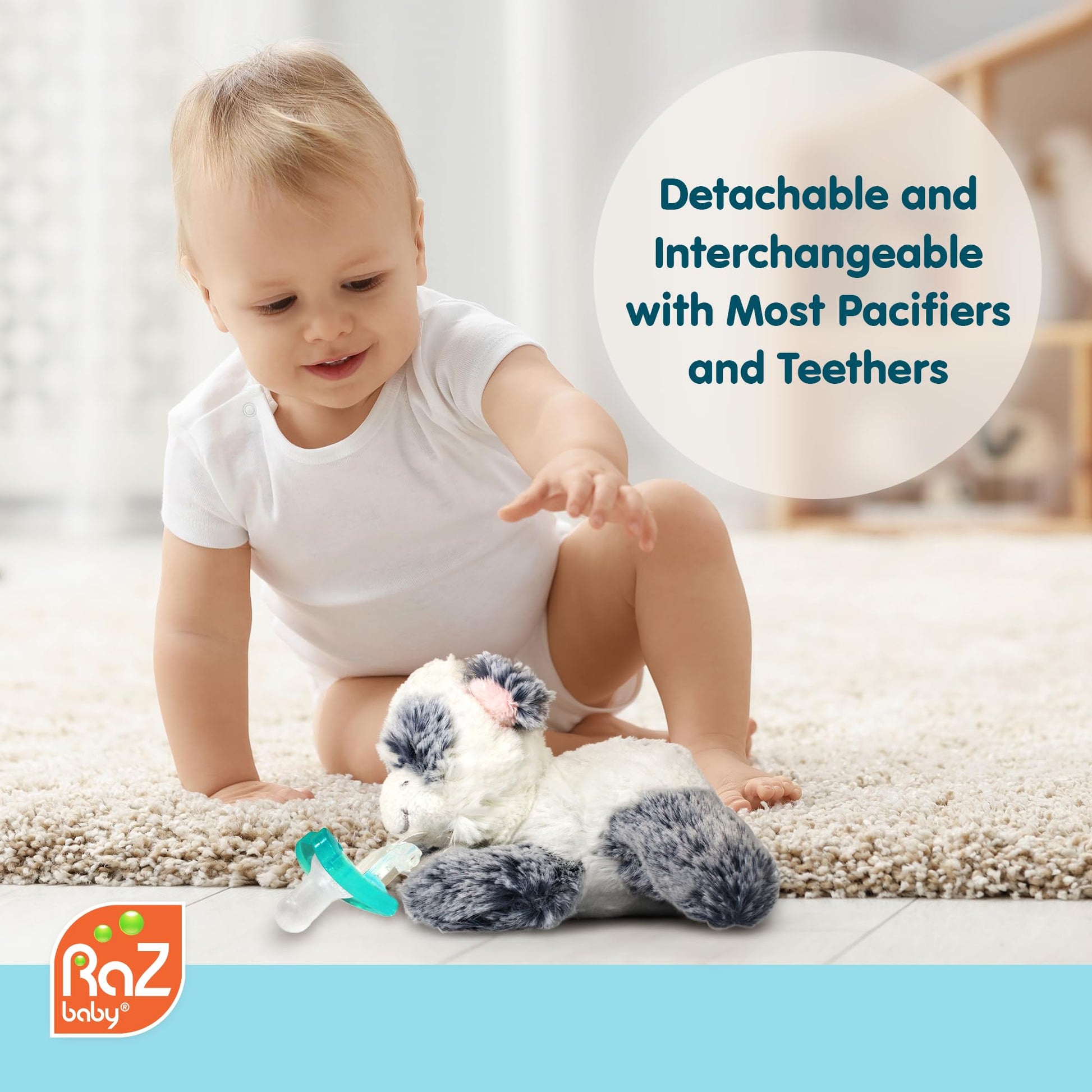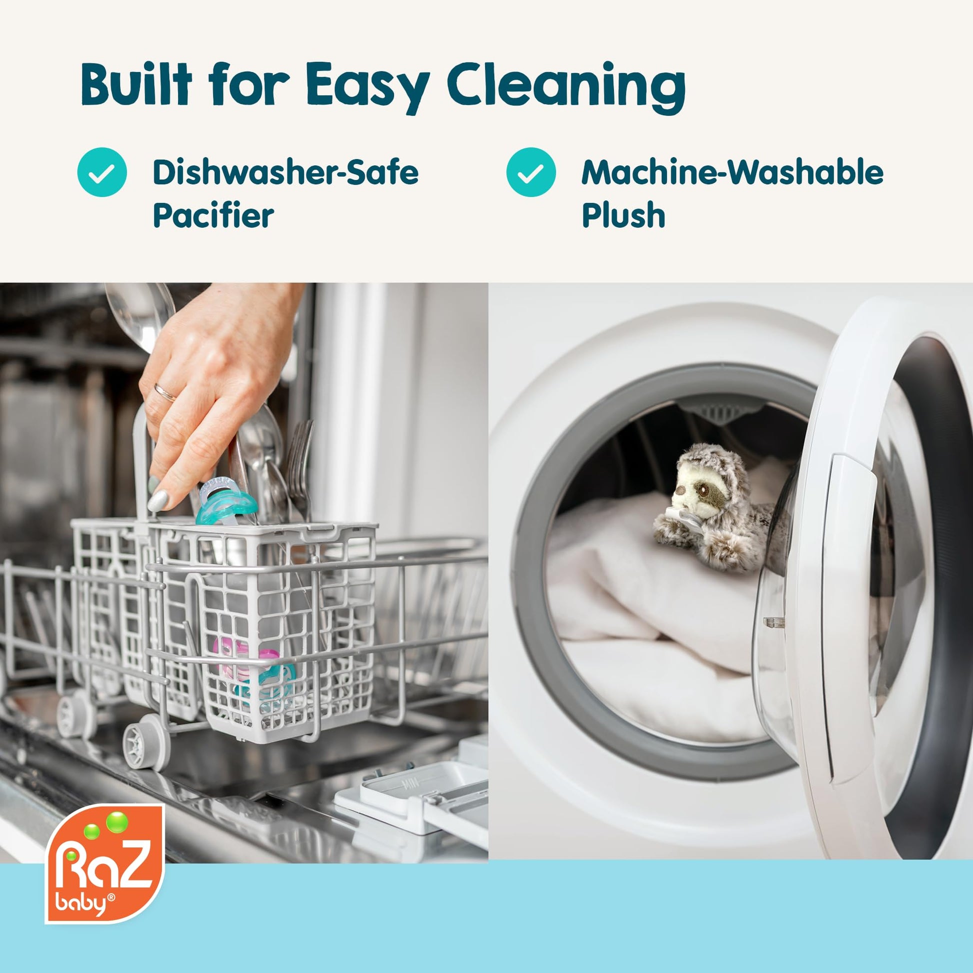 - Easy to Clean & Sterilize: The RaZbuddy plush is machine washable for effortless maintenance, while the detachable JollyPop pacifier should be sterilized first, then dishwasher-safe for easy cleaning and convenient attachment swaps.