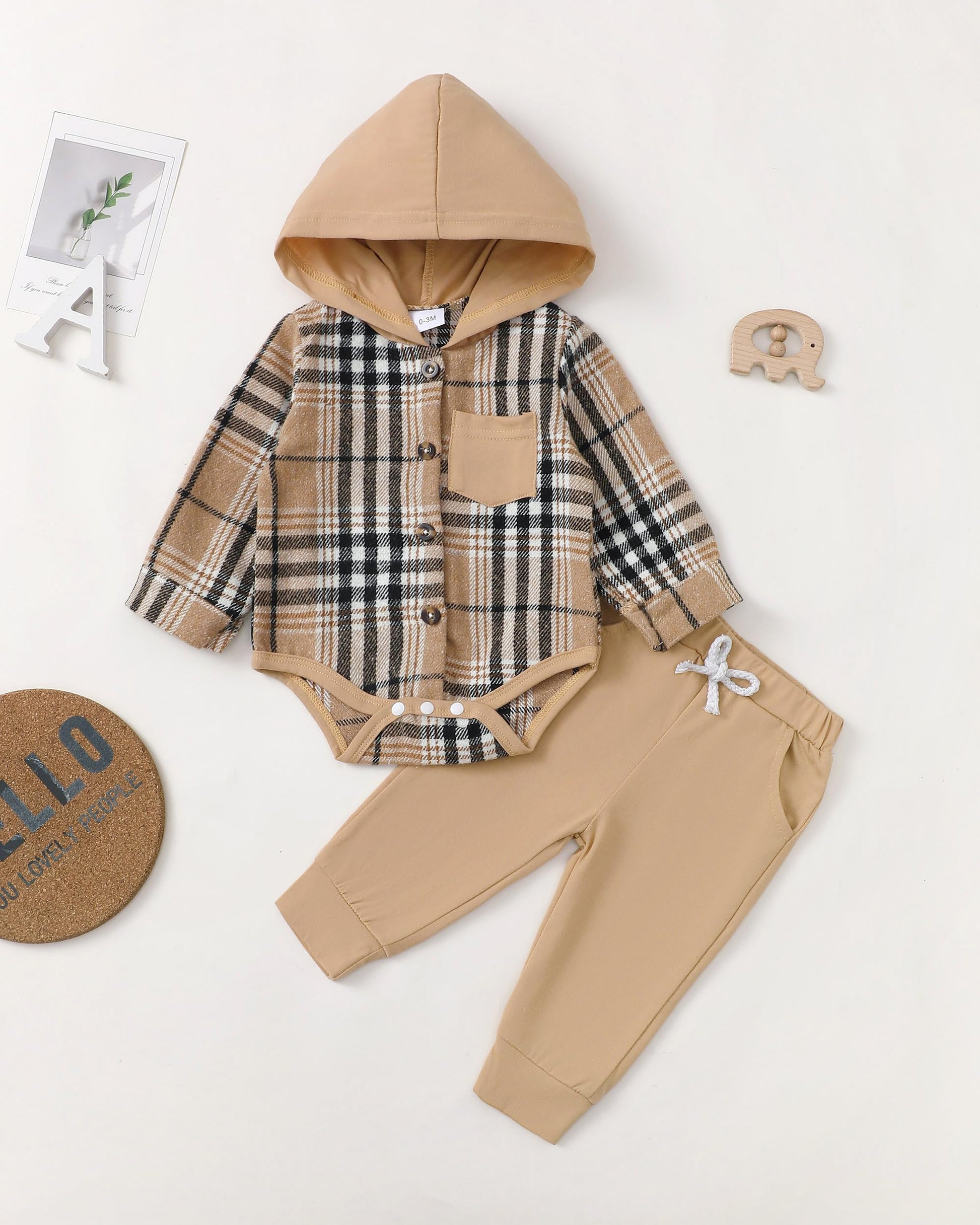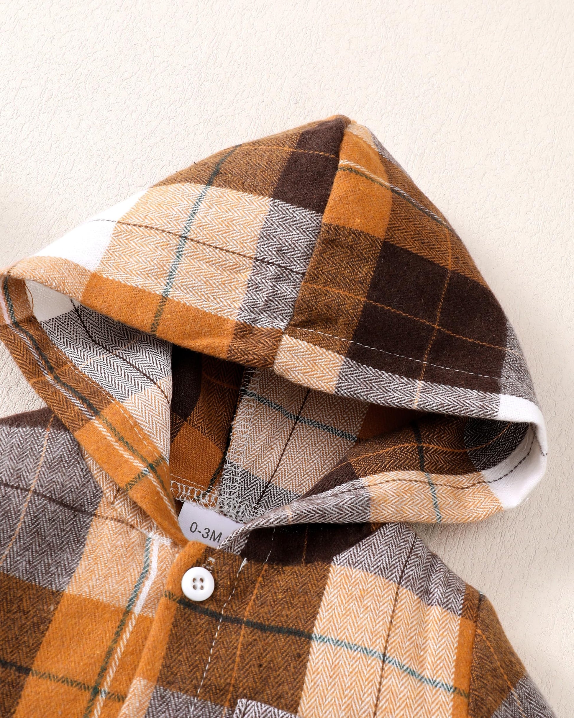 3-6 Months / Plaid Flannel Brown Hoodie B0DJW5CPPG
