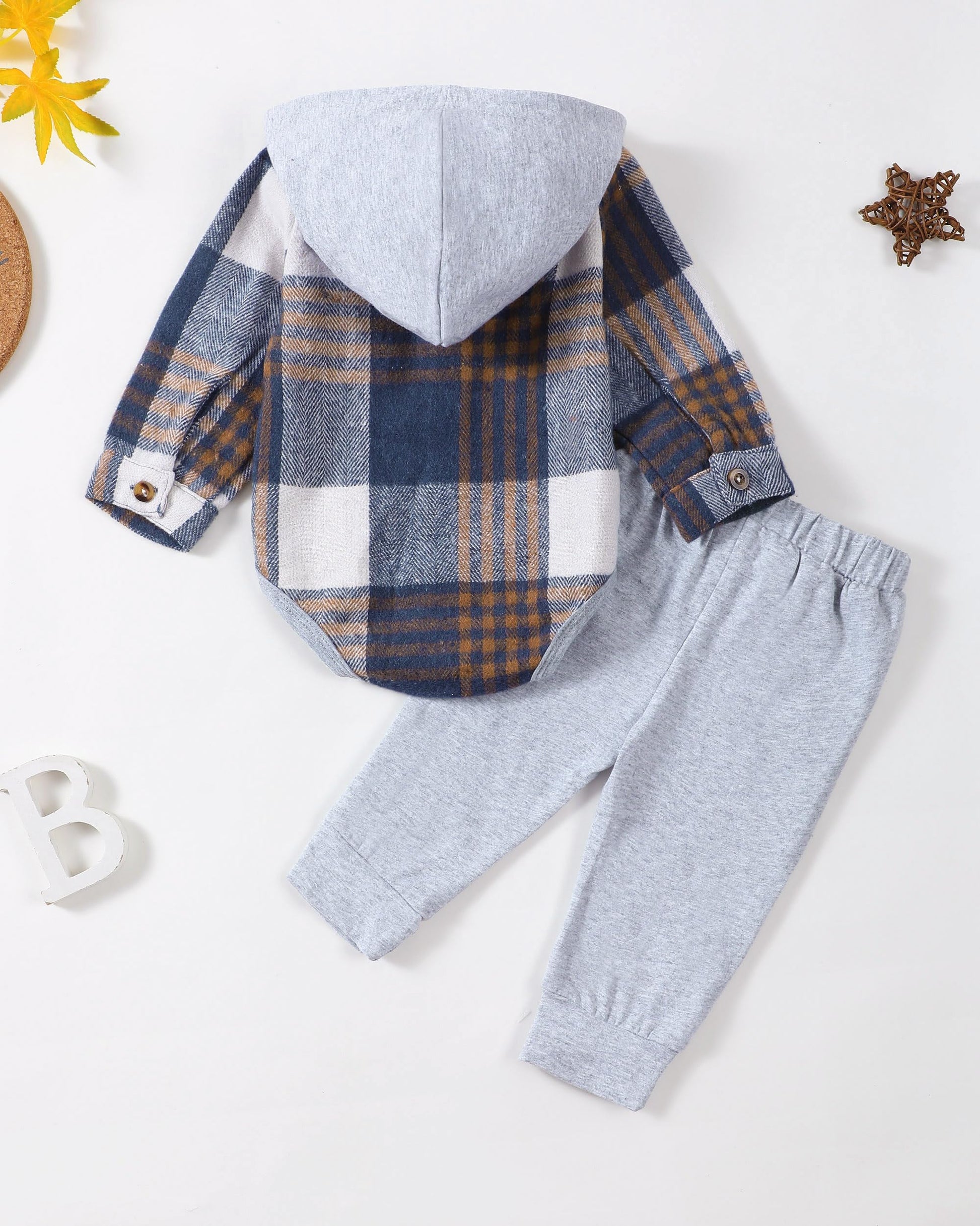 6-12 Months / Grey Plaid Hoodie B0CGLM5BMK