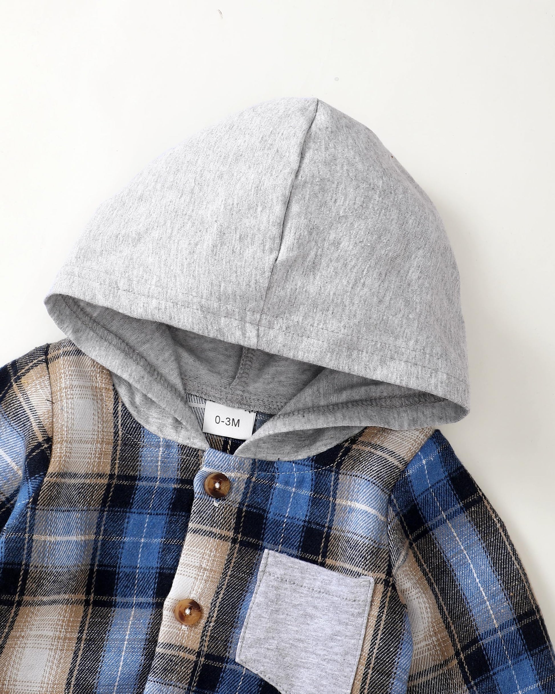 6-12 Months / Blue Plaid Flannel Hoodie B0D6KJ25V2