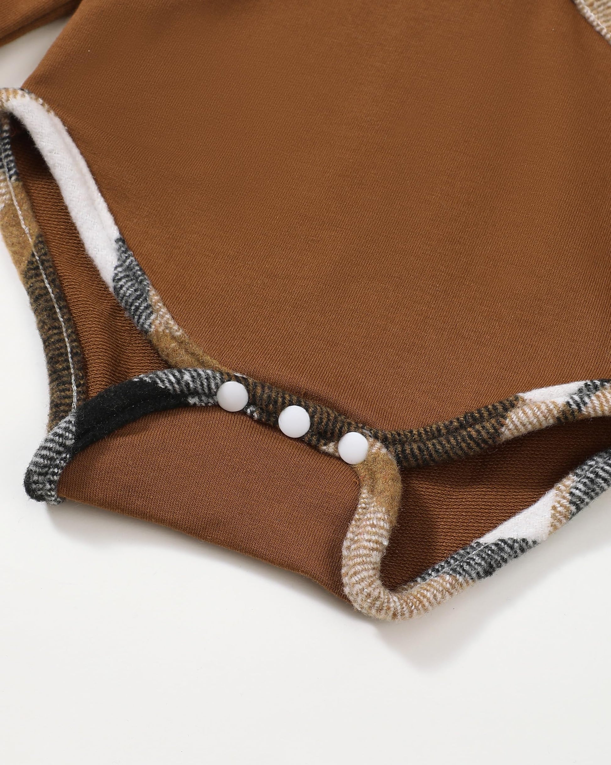 0-3 Months / Brown Plaid Flannel Hoodie B0D6KJTG3X