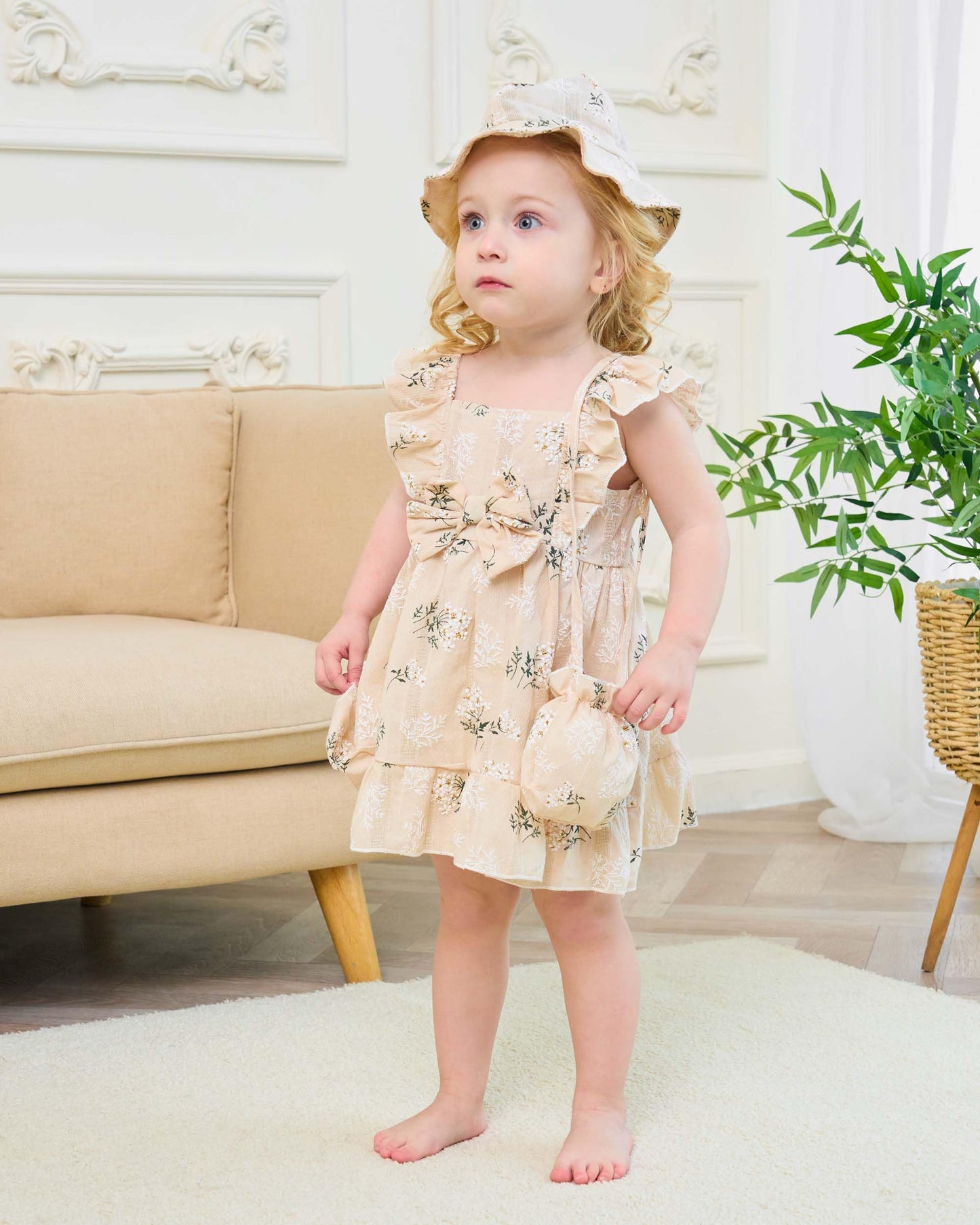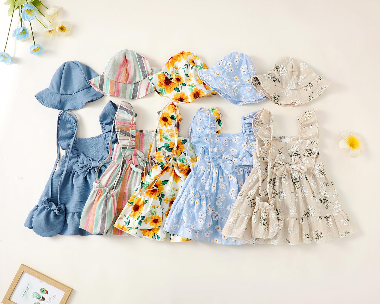 Renotemy Newborn Infant Baby Girl Dresses Summer Outfits Boho Casual Sundress Gifts Toddler Clothes for Girl with Hat and Bag