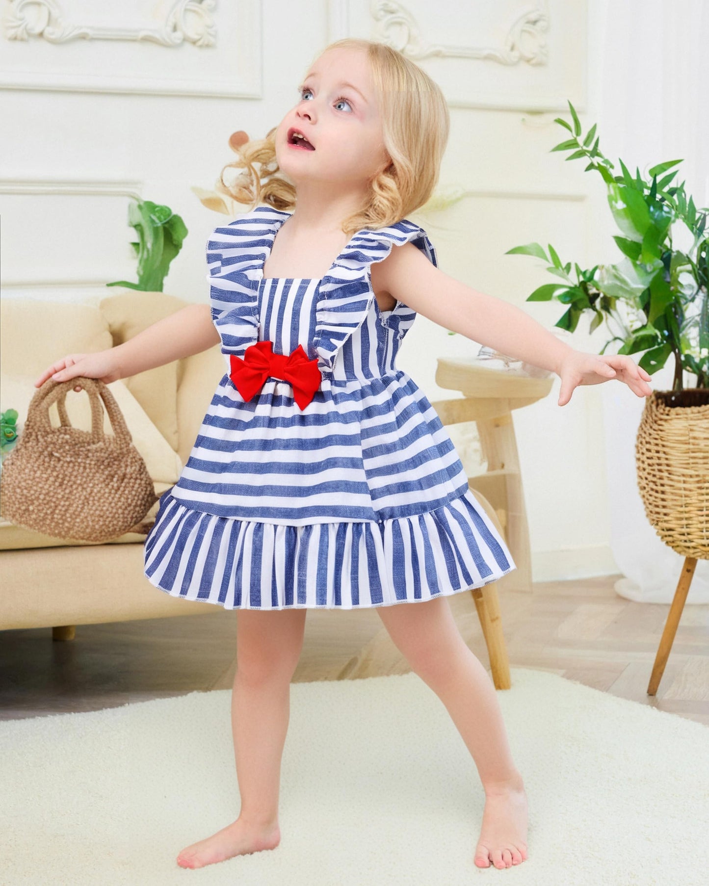 - Adorable Design: Features elegant boho beige floral embroidery/ blue daisy floral /yellow sunflower/solid denim blue/blue stripe/strawberry/multicolor, layered ruffle details, and a big bowknot on the front, giving this outfit a cute yet stylish look for birthdays, photoshoots, and other events.