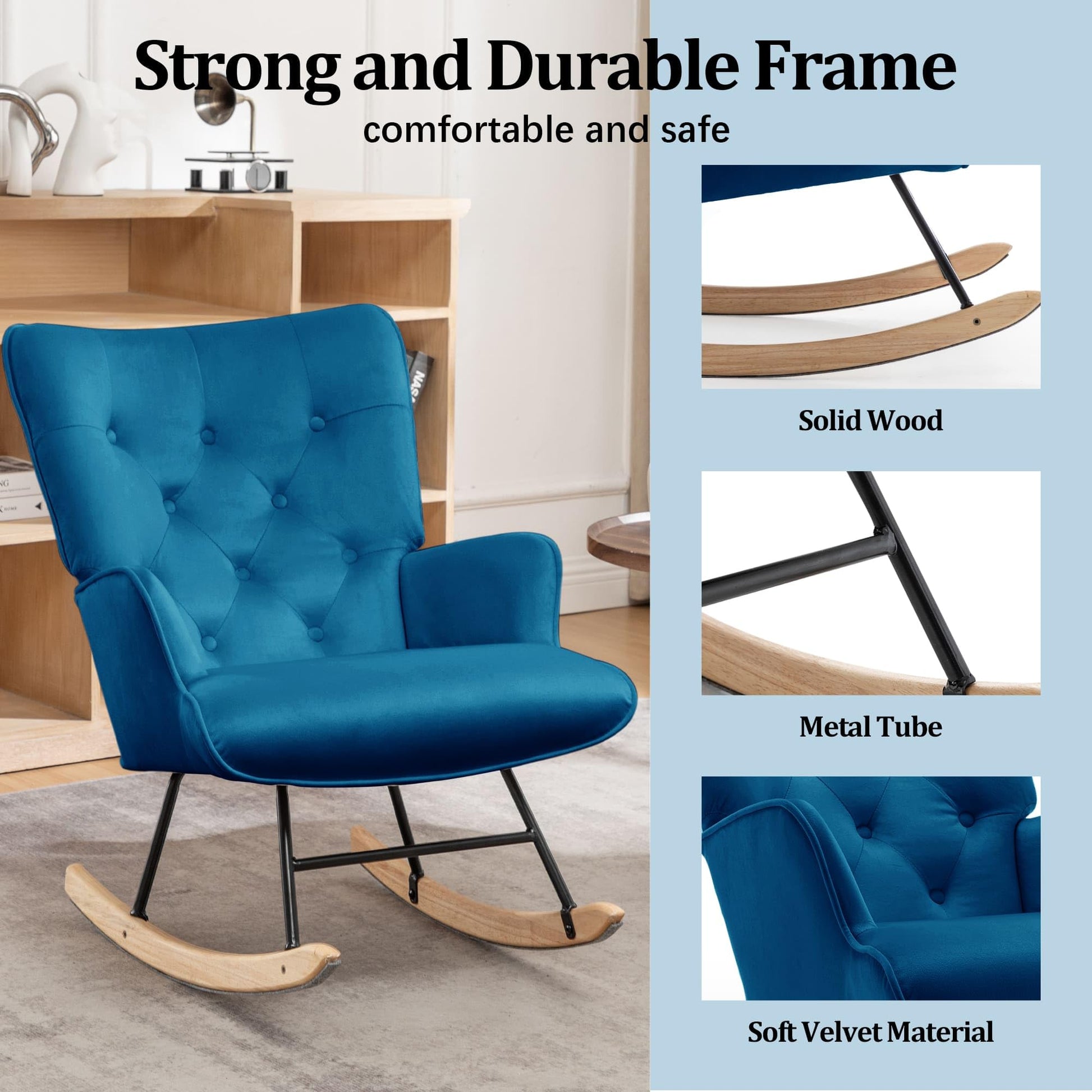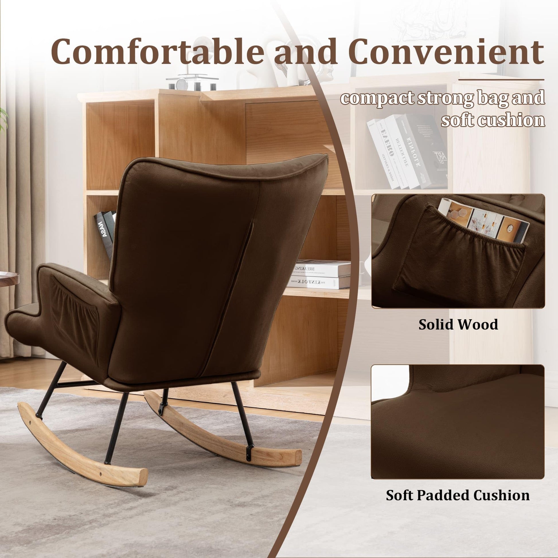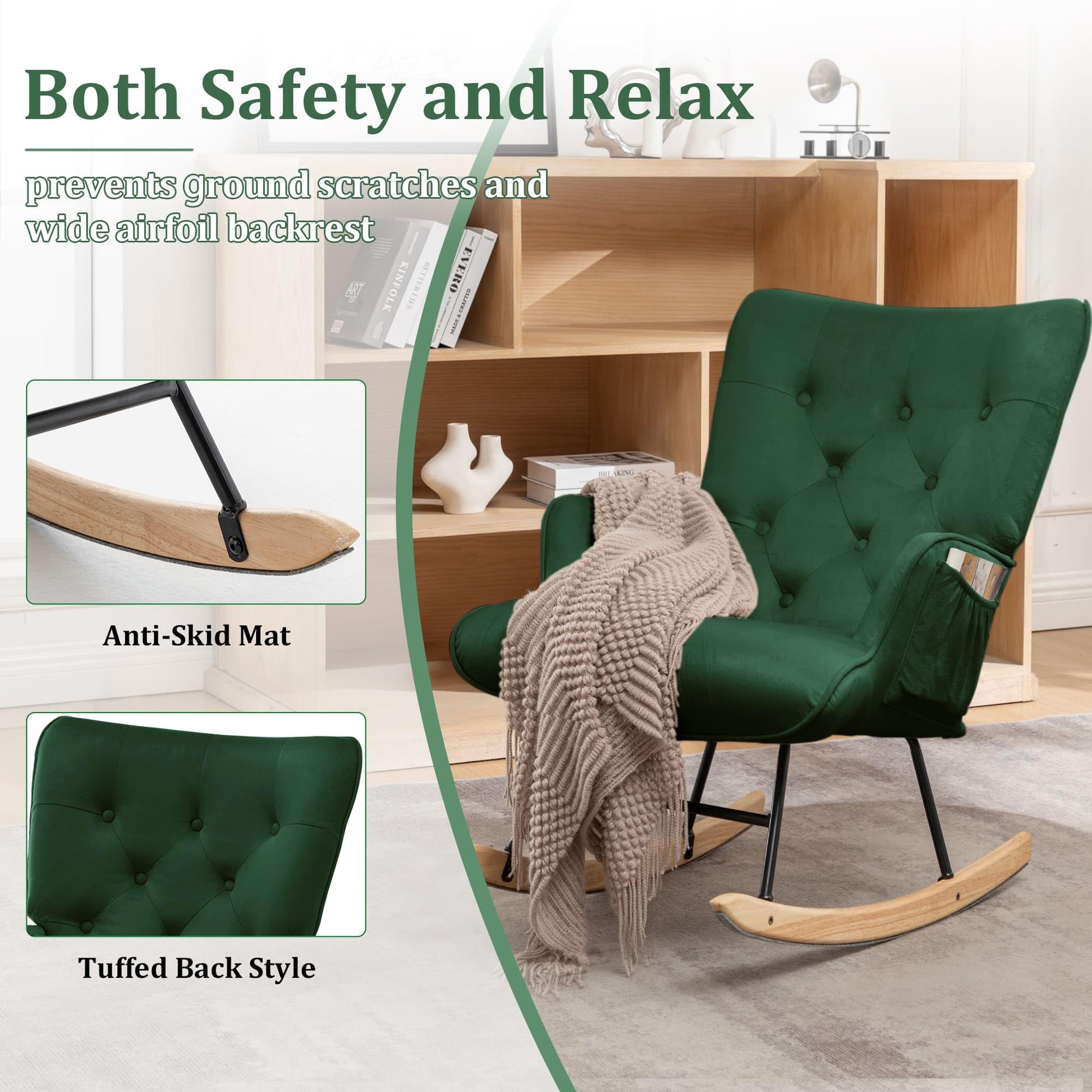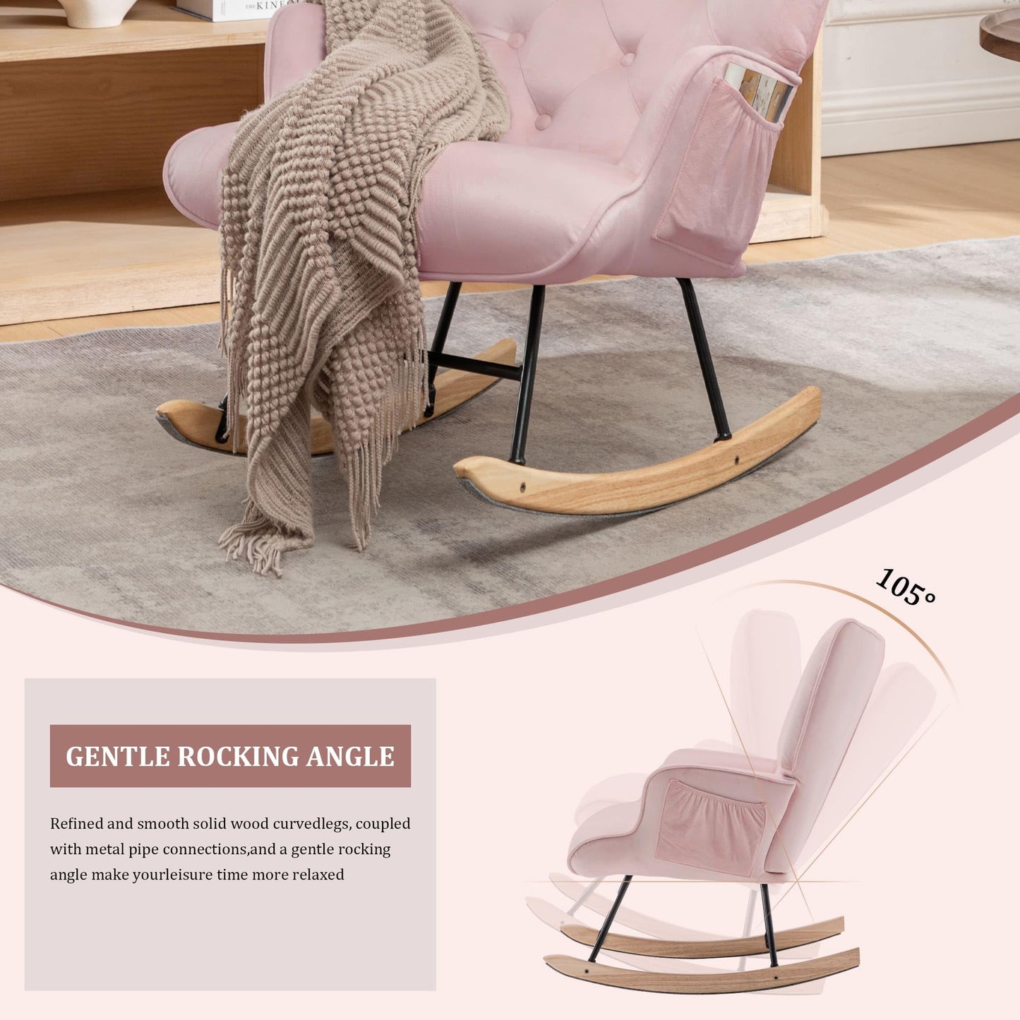 - 【Rocking Chair Full of Thoughtful Details】: Designed to sooth both you and your baby, the gentle rocking rhythm of this nursery chair provides a calming, relaxing experience, perfect for soothing babies to sleep faster. For added convenience, easy-access side pockets allow you to store books or baby essentials. In addition to this, the solid wood legs come with protective pads so you can move them anywhere in your home to protect your floors from scratches.