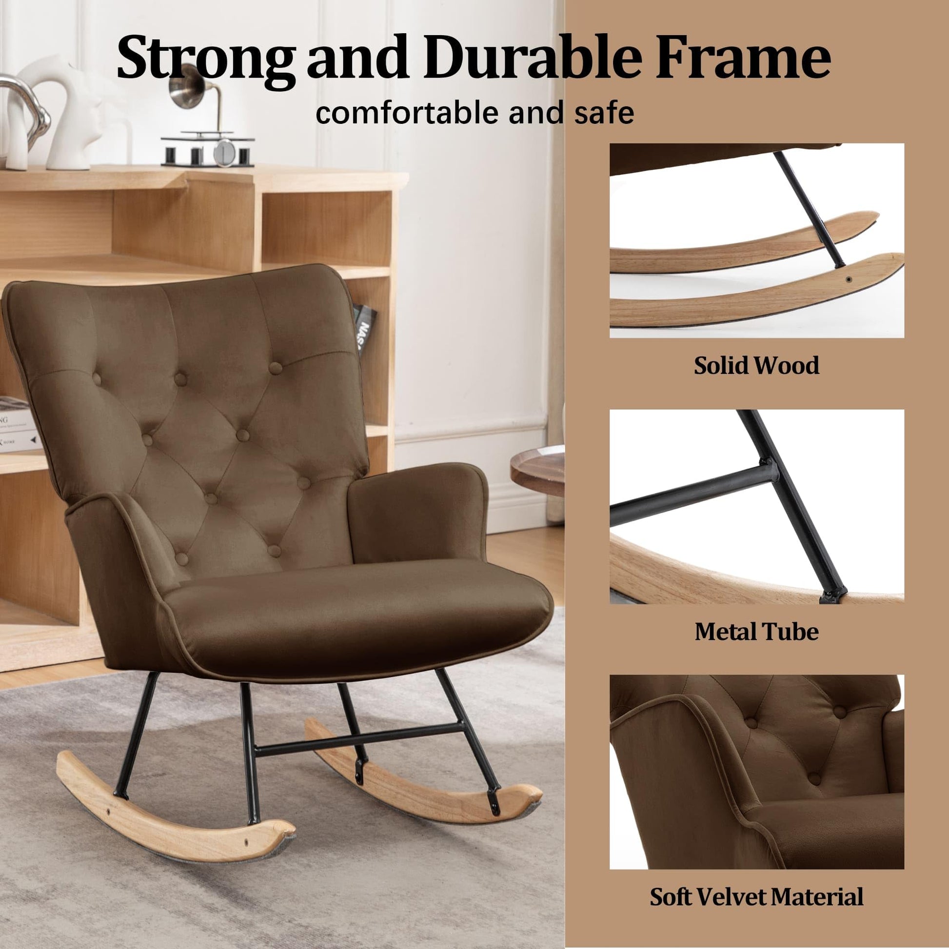 - 【Designed for Your Safety】: This nursing chair is constructed with a durable steel and solid wood frame, reliable rocking for those moments when you need to relax. The 30°safety-limited sway range ensures safe stability as you sway forward and backward, so you feel more comfortable. For added security, it's advisable to keep your feet on the floor while rocking, offering both peace of mind and an enjoyable experience.