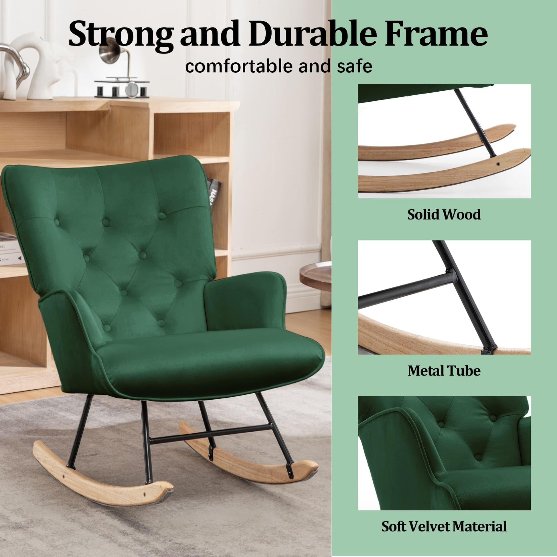- 【Comfortable and Ergonomic】: Ysick the support back and thick seat cushion of this nursery rocking chair are filled with premium sponge, providing a soft, comfortable, and resilient feel that not easy to collapse. This rocking chair's backrest and armrests are designed according to ergonomic principles, providing maximum comfort and safety, letting you fully relax and unwind after a long day.If you want to experience our high-quality products, please order now, the quantity is limited.