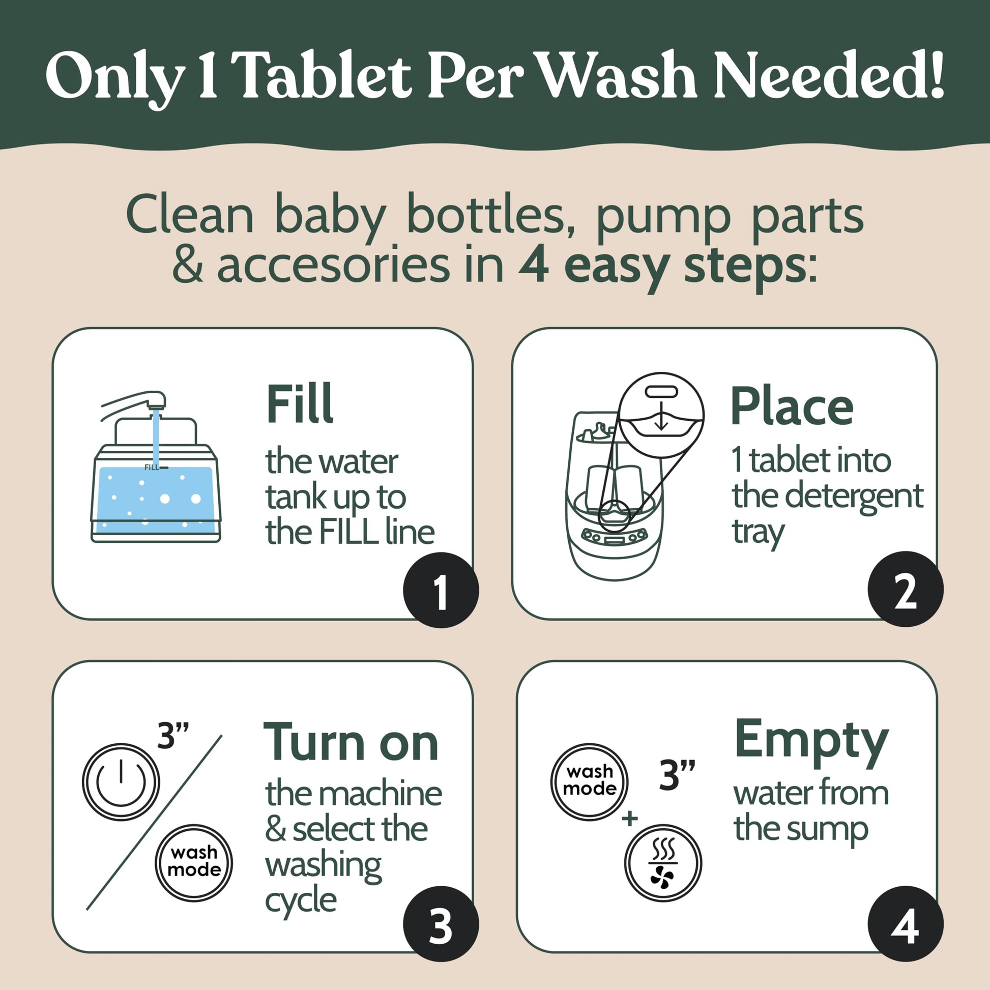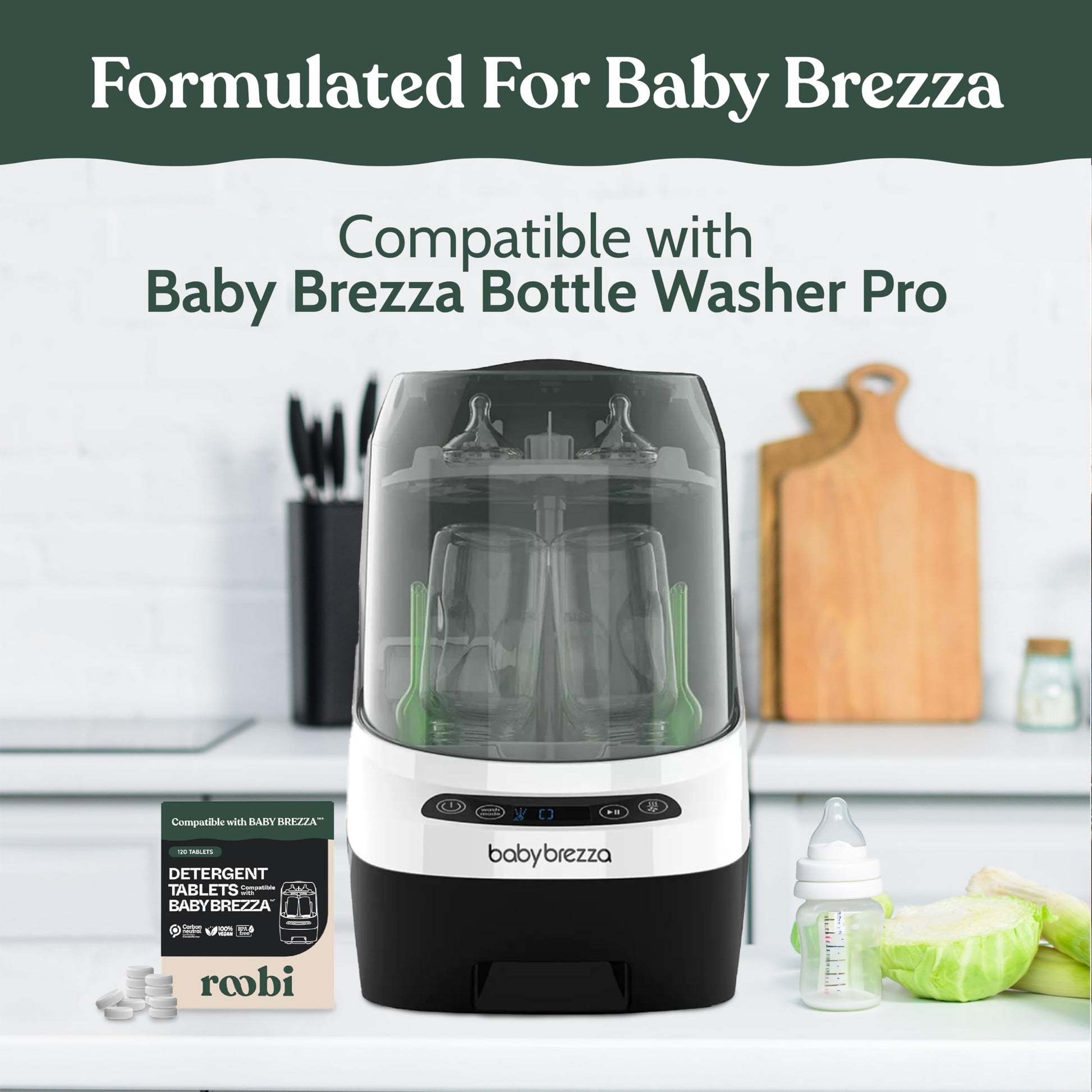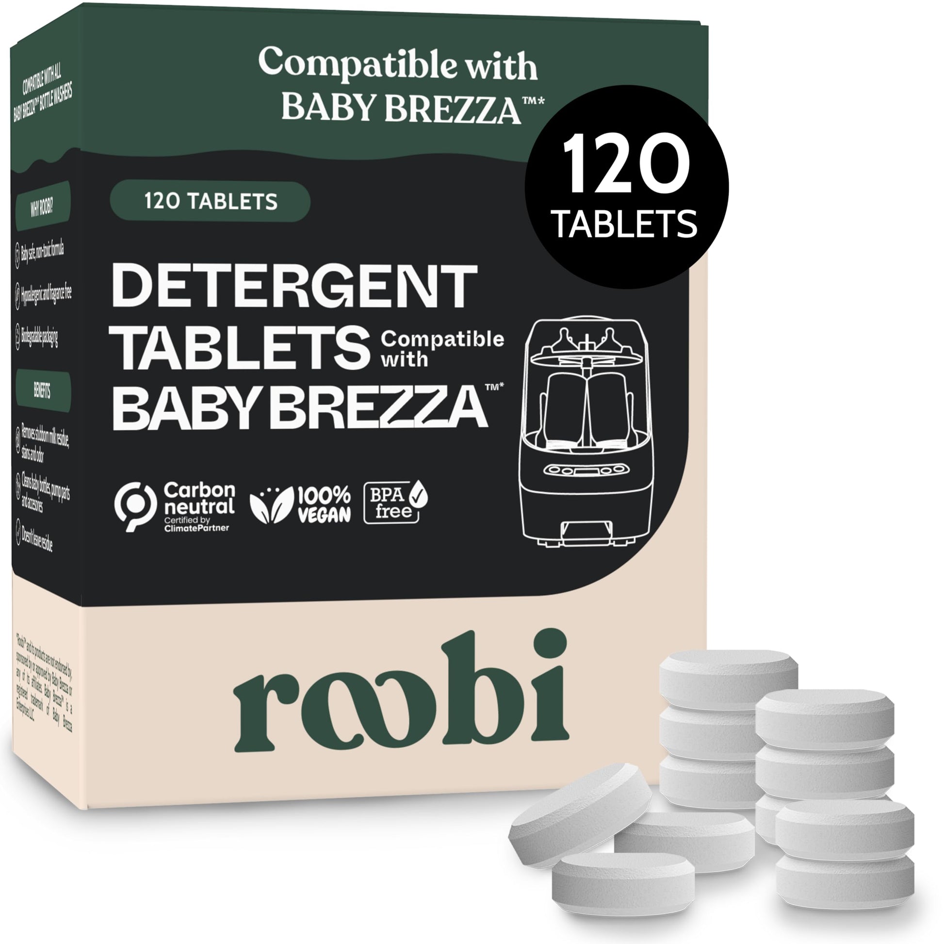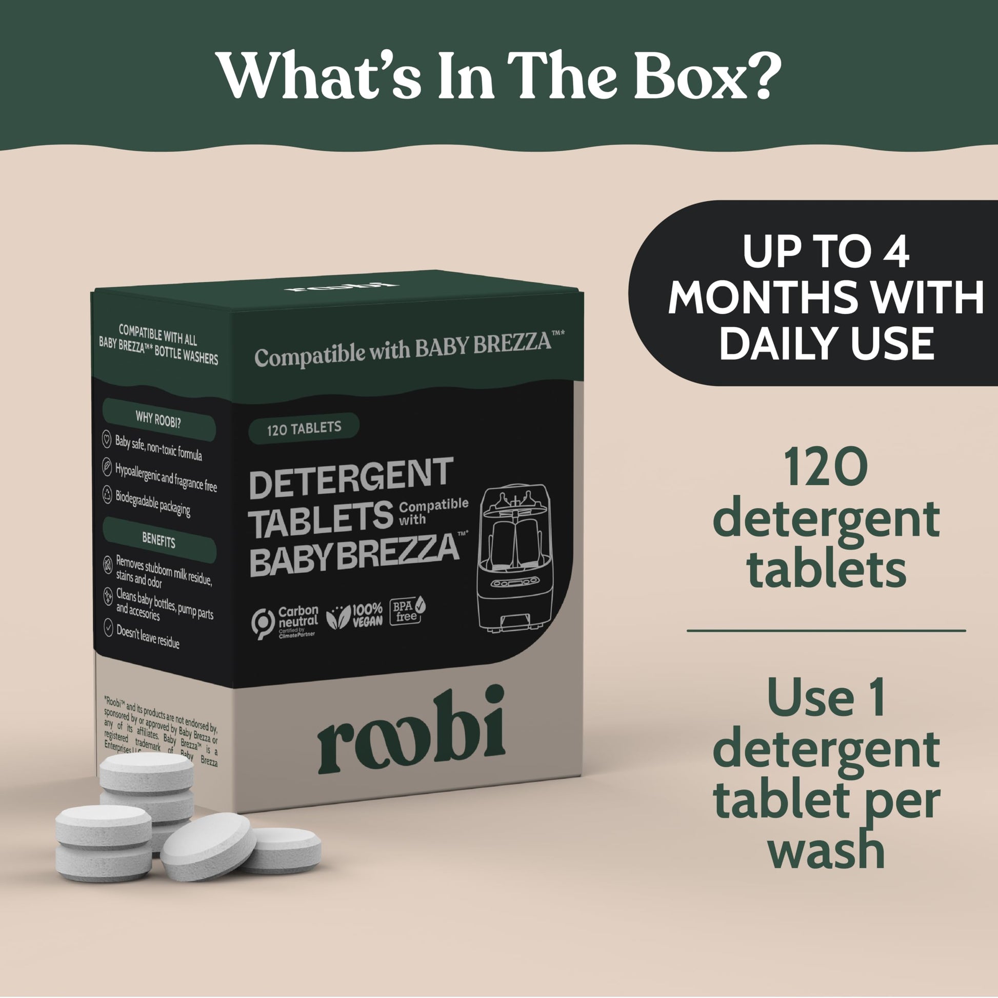 Roobi Detergent Tablets Compatible with Baby Brezza Bottle Washer Pro. Removes Milk Residue & Odor, Hypoallergenic Carbon Neutral Formula. 120 Count.