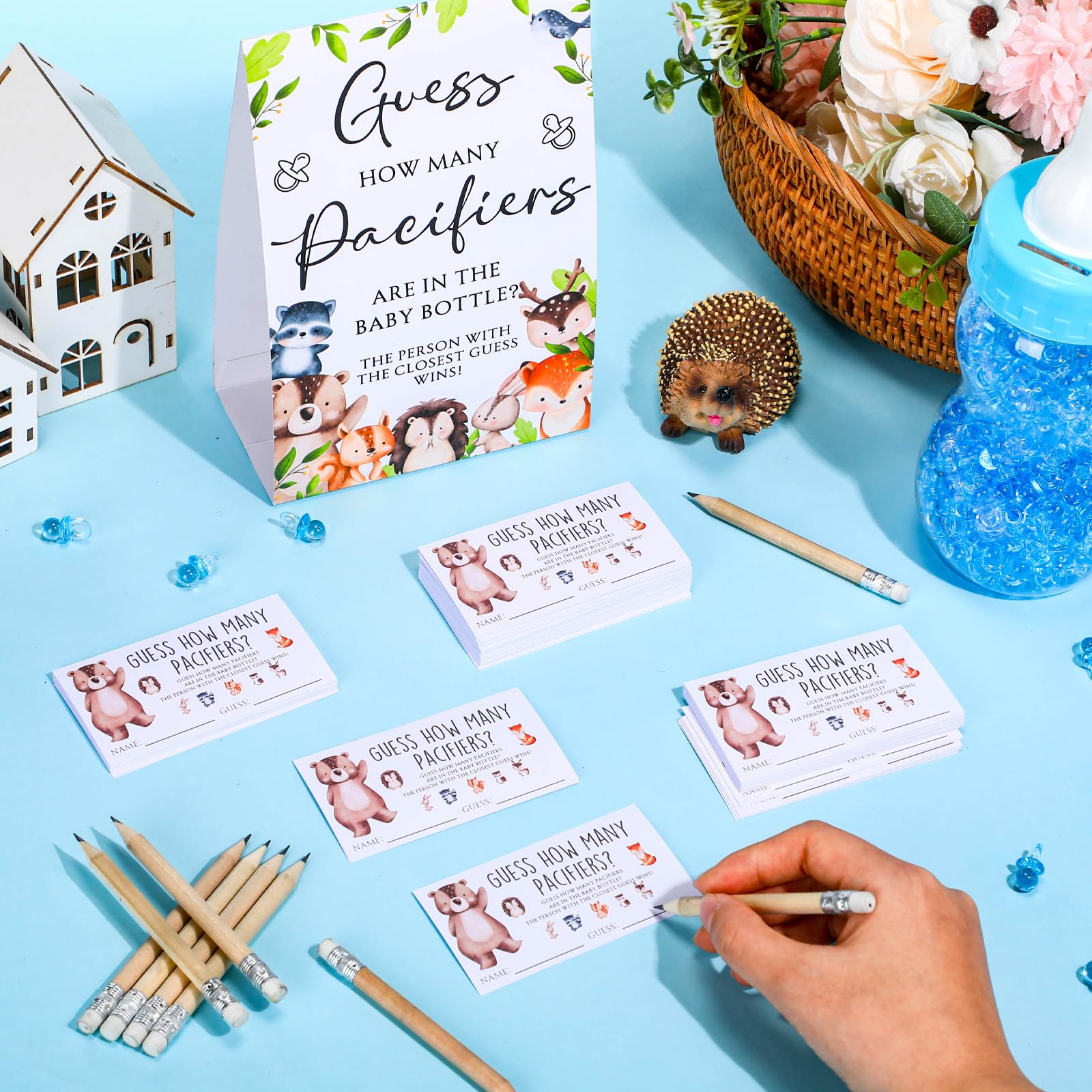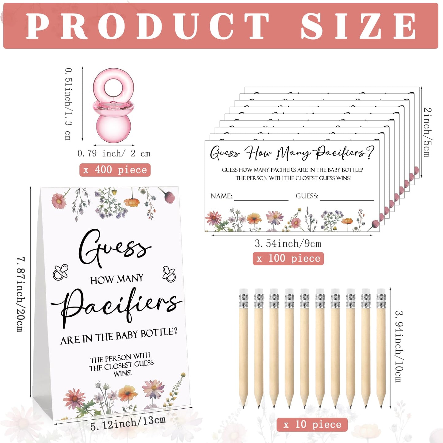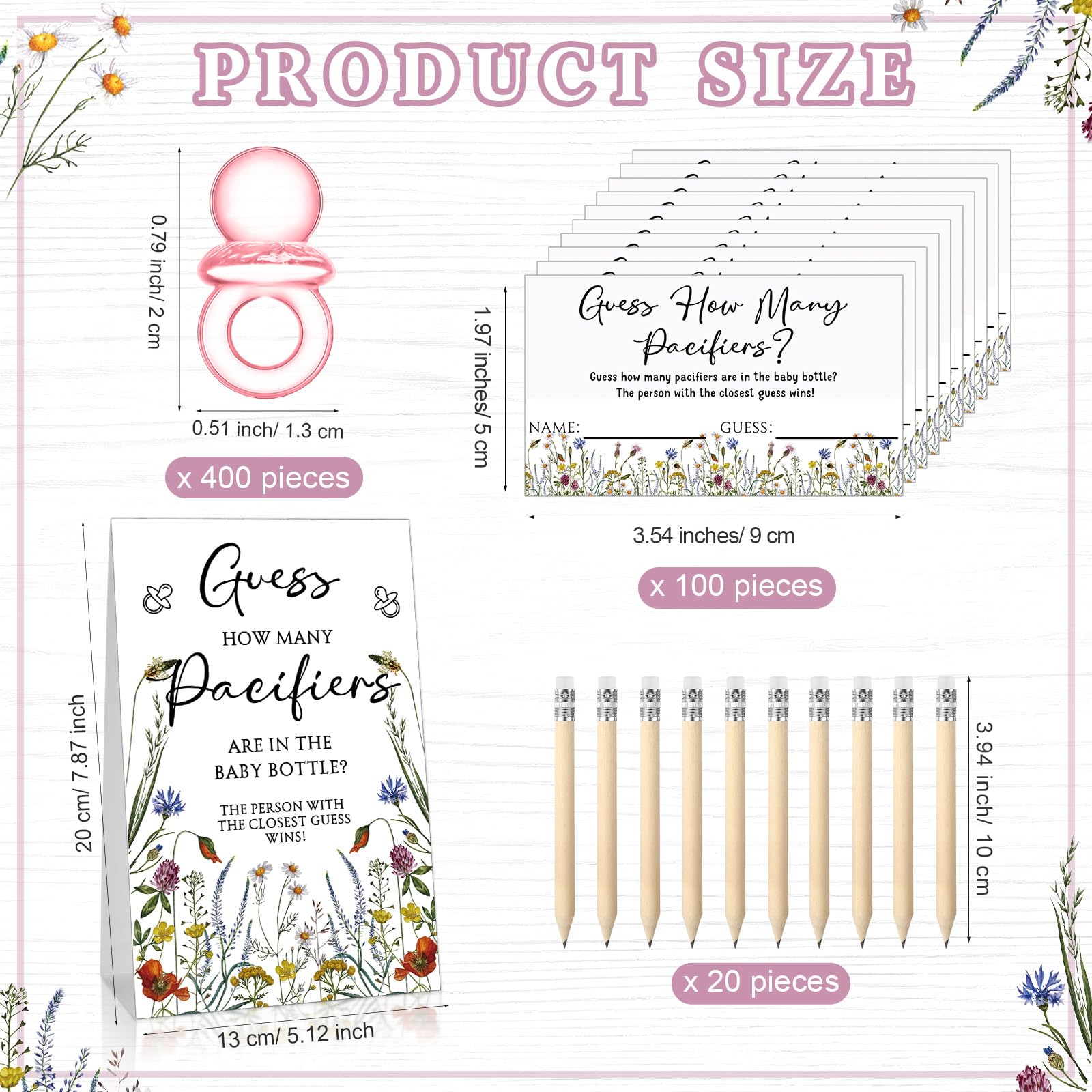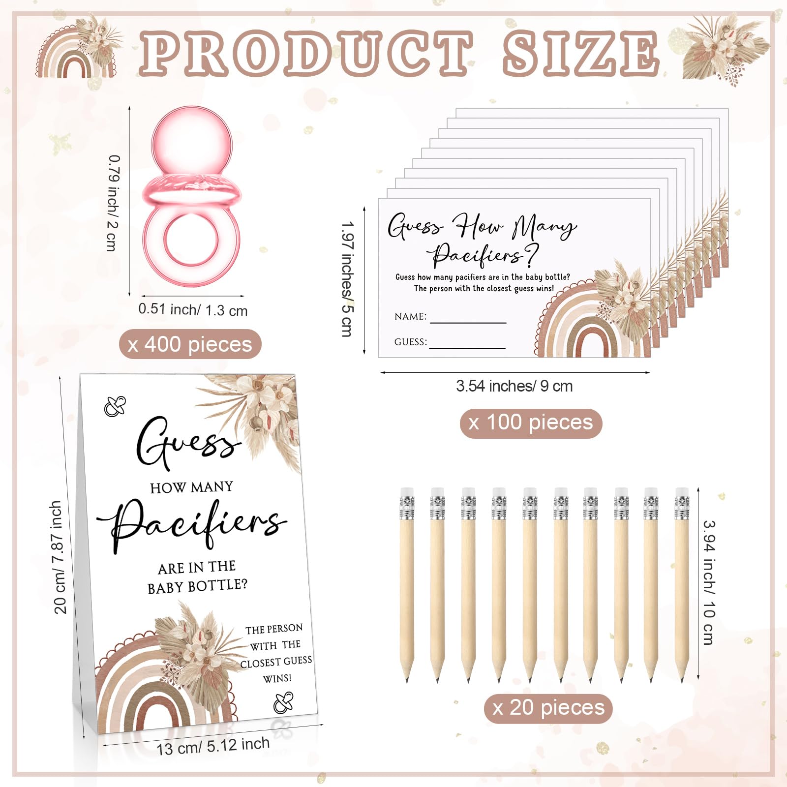 - Greenery Cards Set: you will get 1 piece of Guess How Many Pacifiers game sign, 100 pieces of small cards, 10 piece of HB pencils, 1 piece of milk bottle in 750 ml, and 400 pieces of mini baby pacifiers, which can meet your various demands and bring you a nice playing experience, also ideal for sharing with others