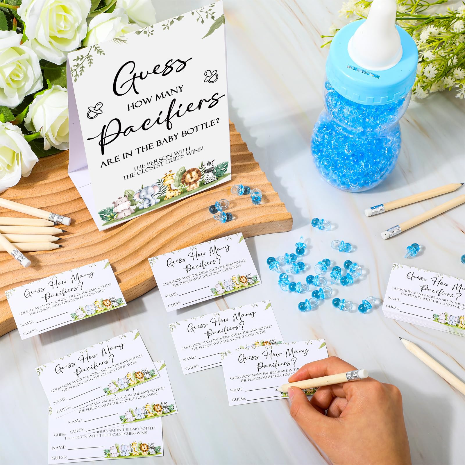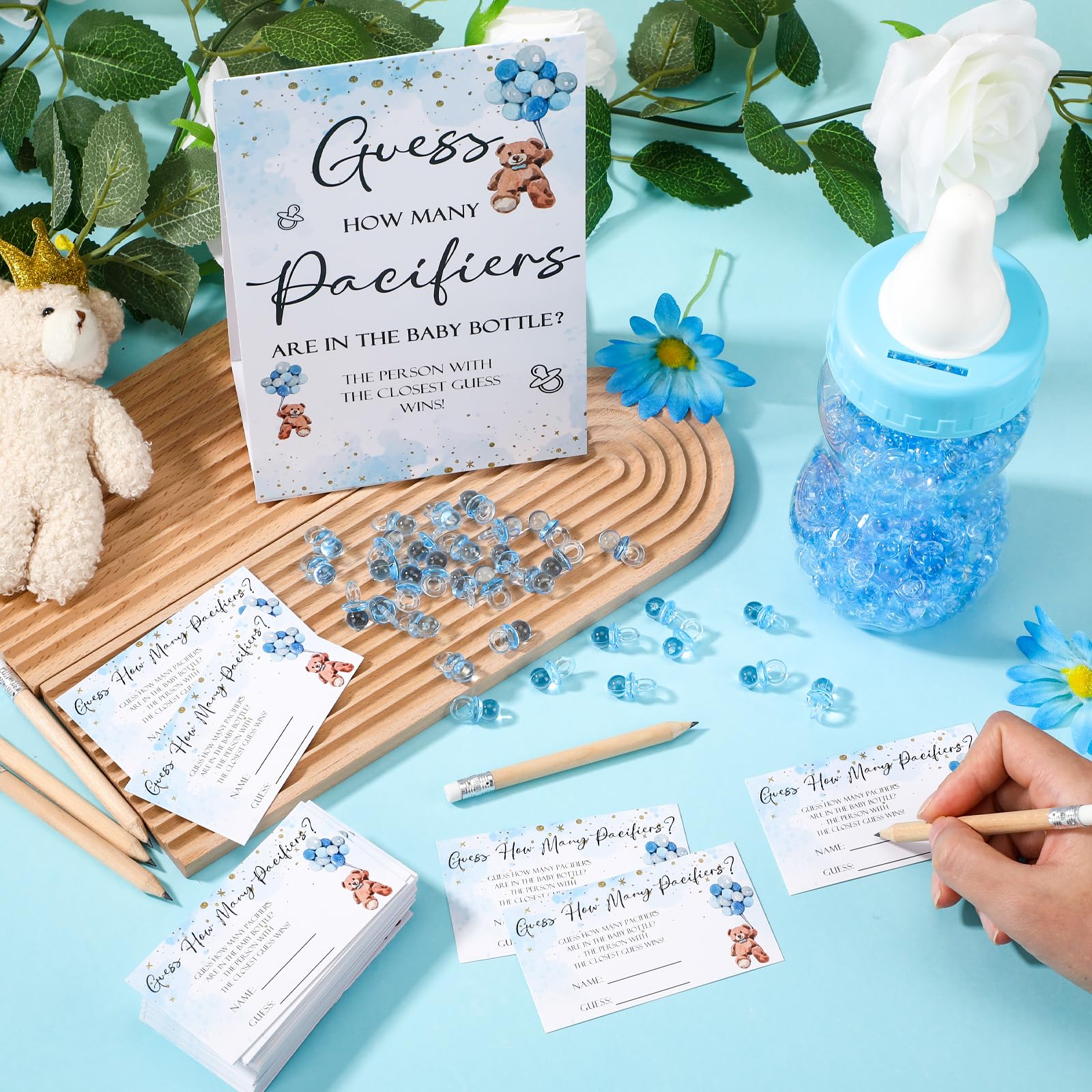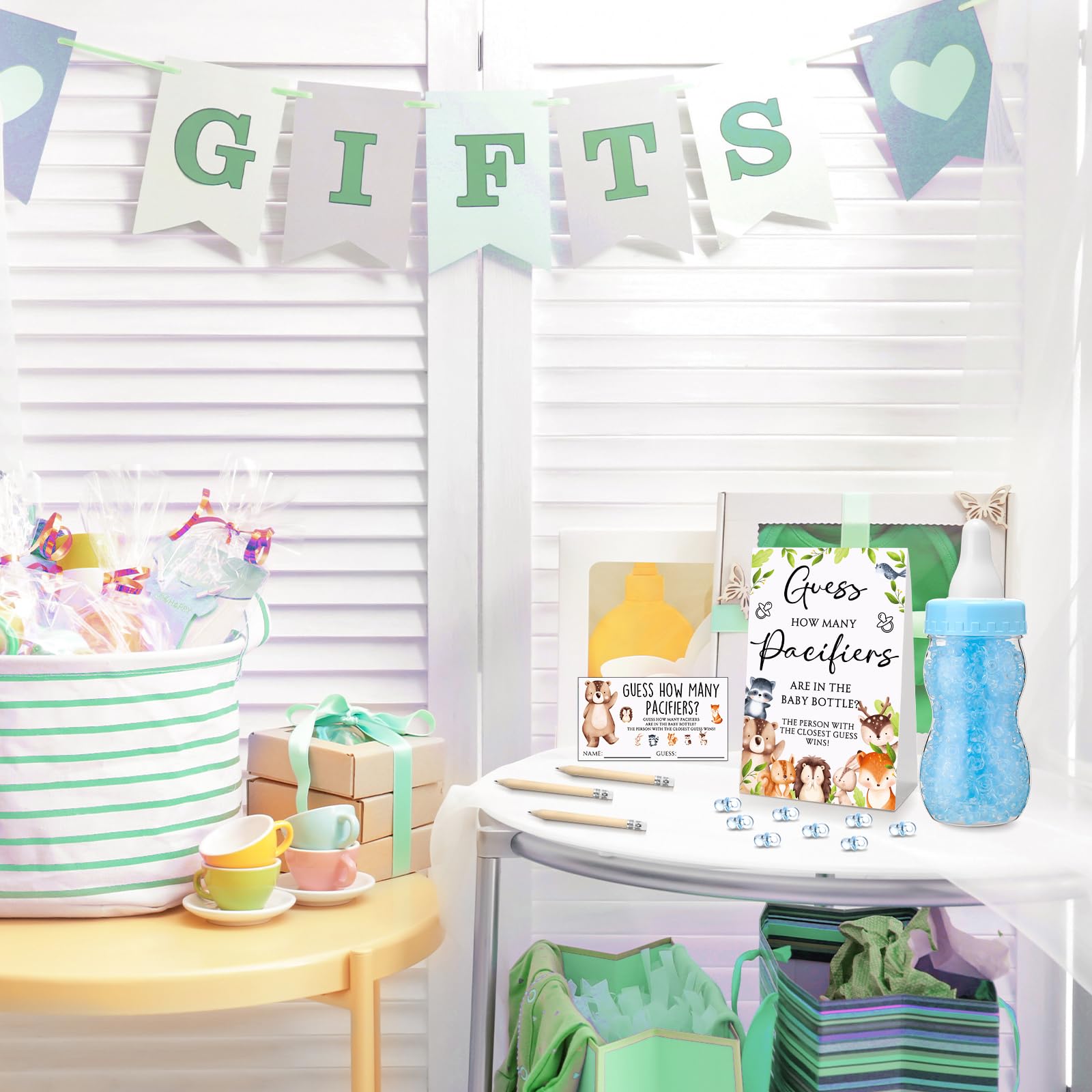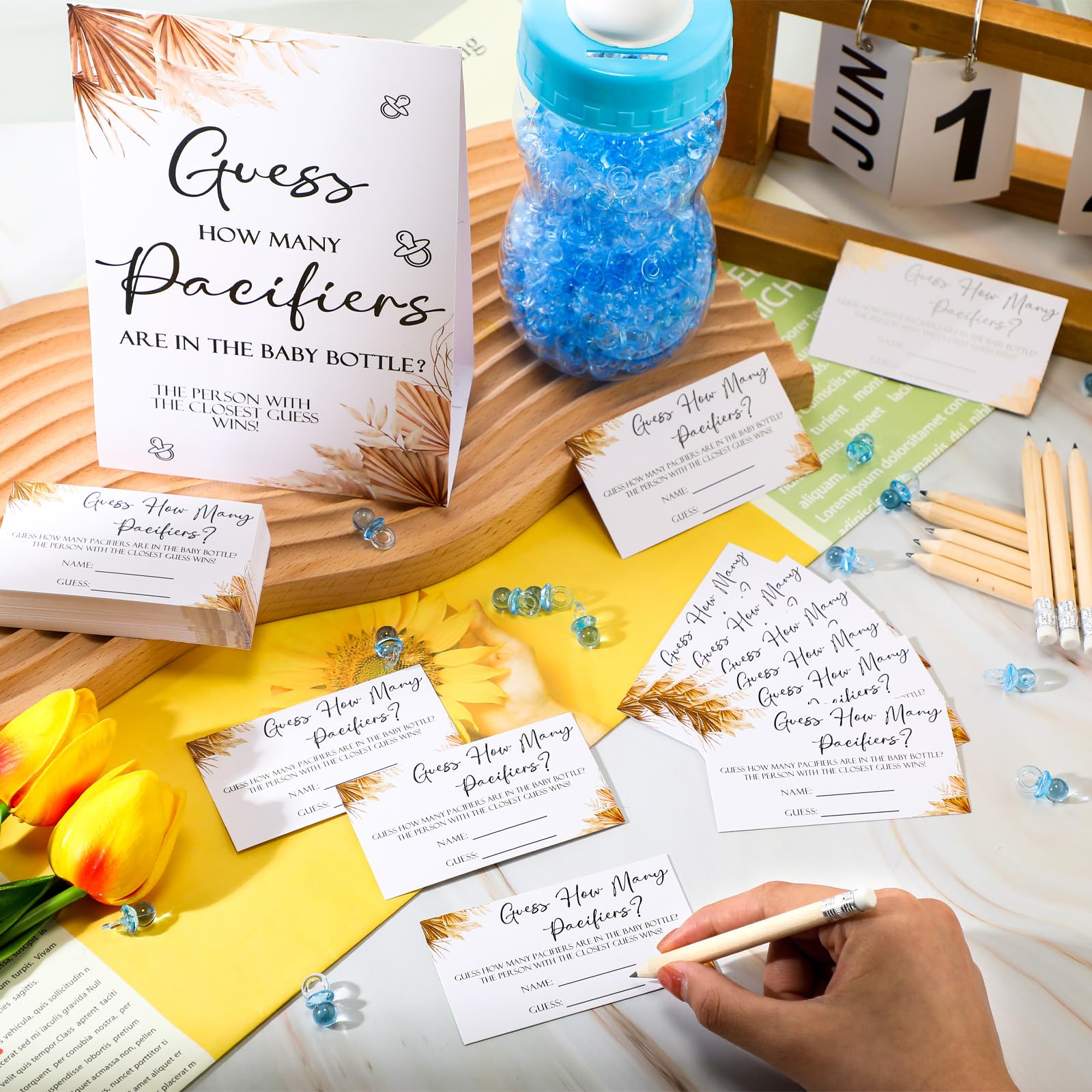 - Greenery Cards Set: you will get 1 piece of Guess How Many Pacifiers game sign, 100 pieces of small cards, 10 piece of HB pencils, 1 piece of milk bottle in 750 ml, and 400 pieces of mini baby pacifiers, which can meet your various demands and bring you a nice playing experience, also ideal for sharing with others