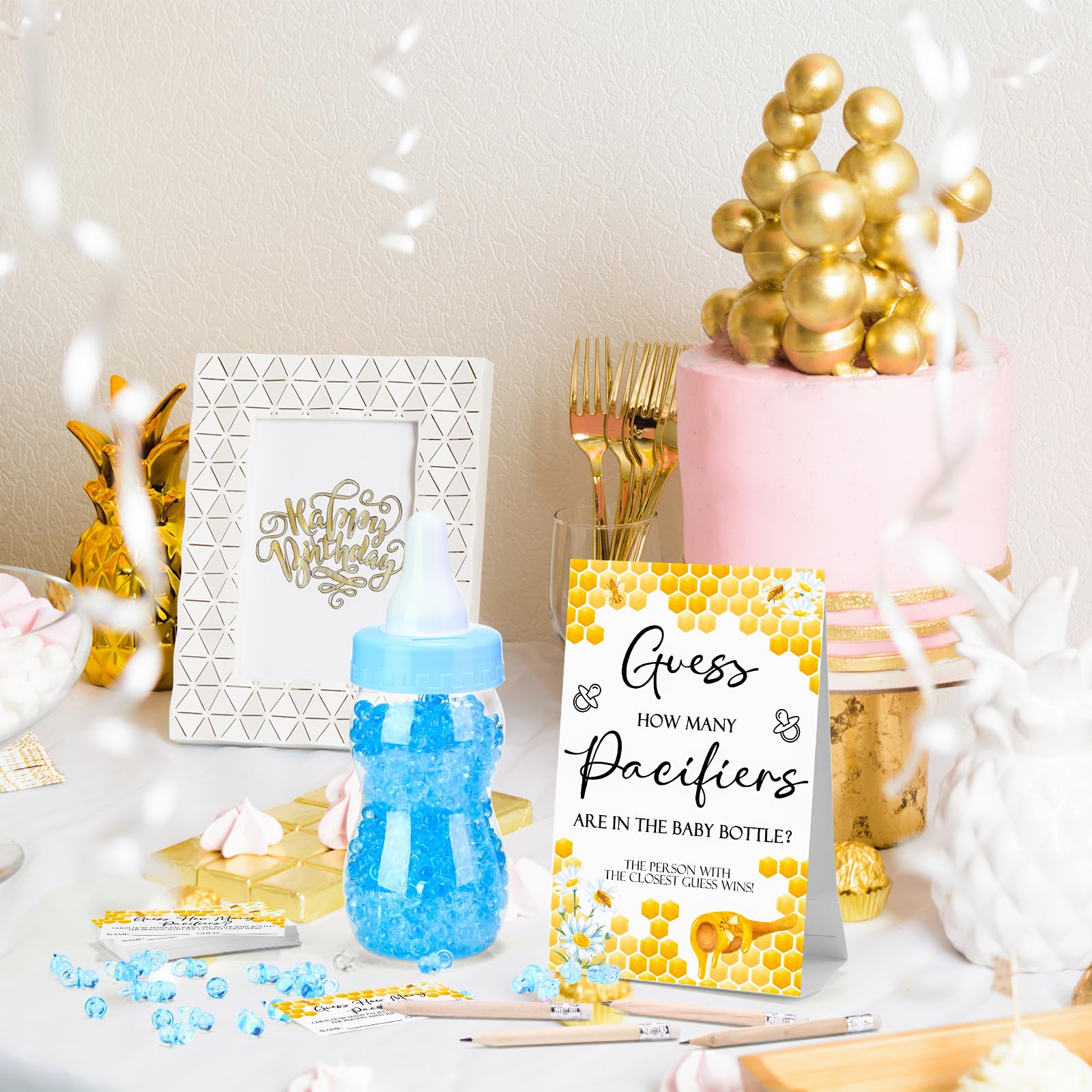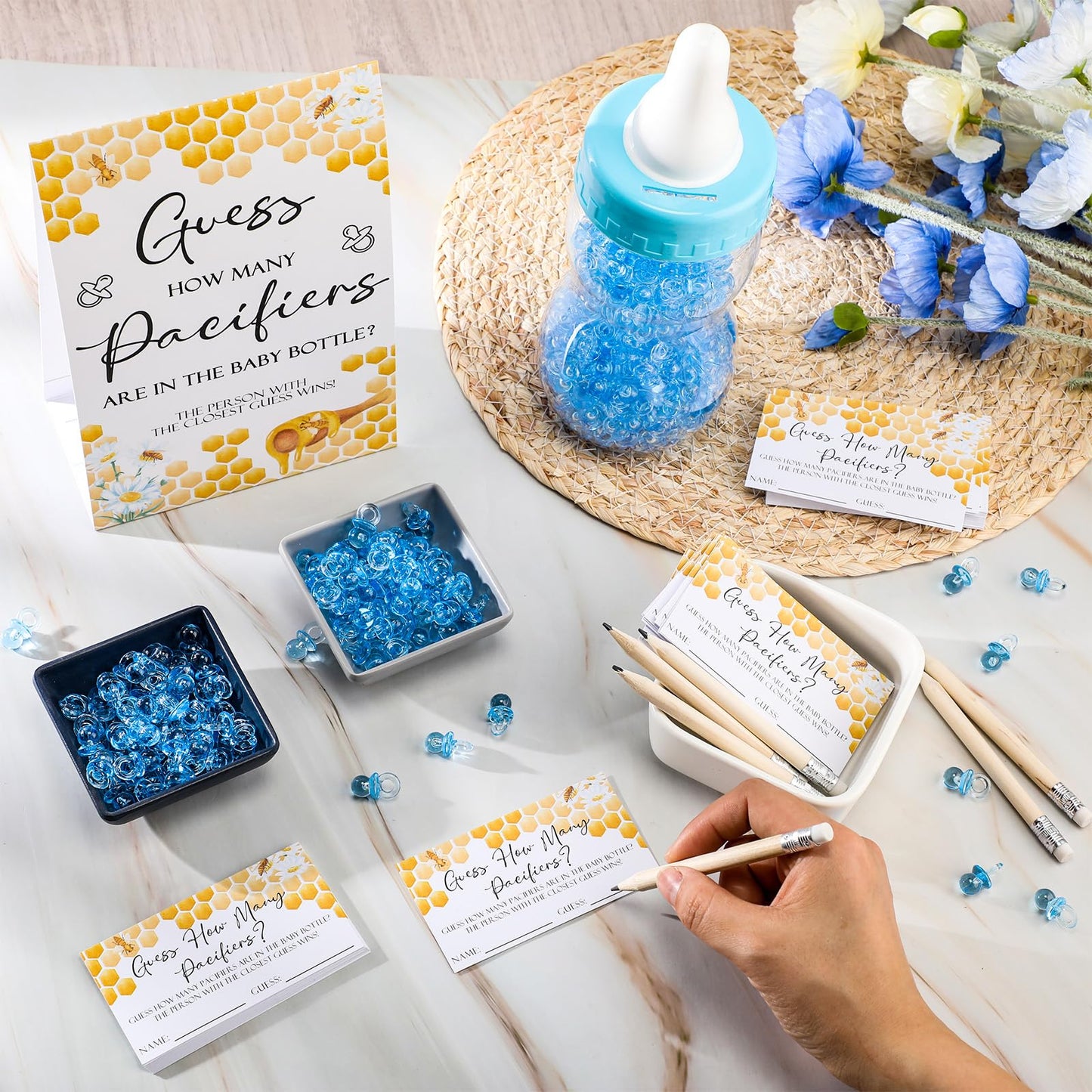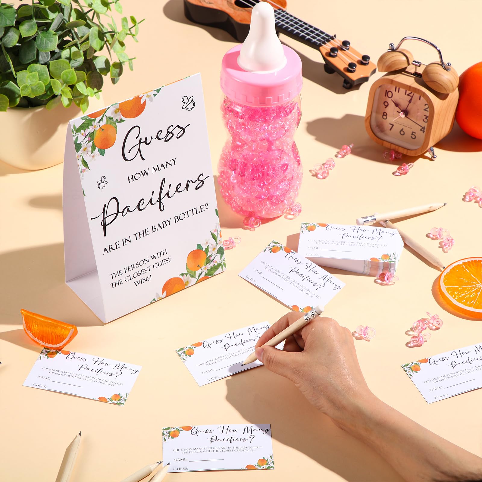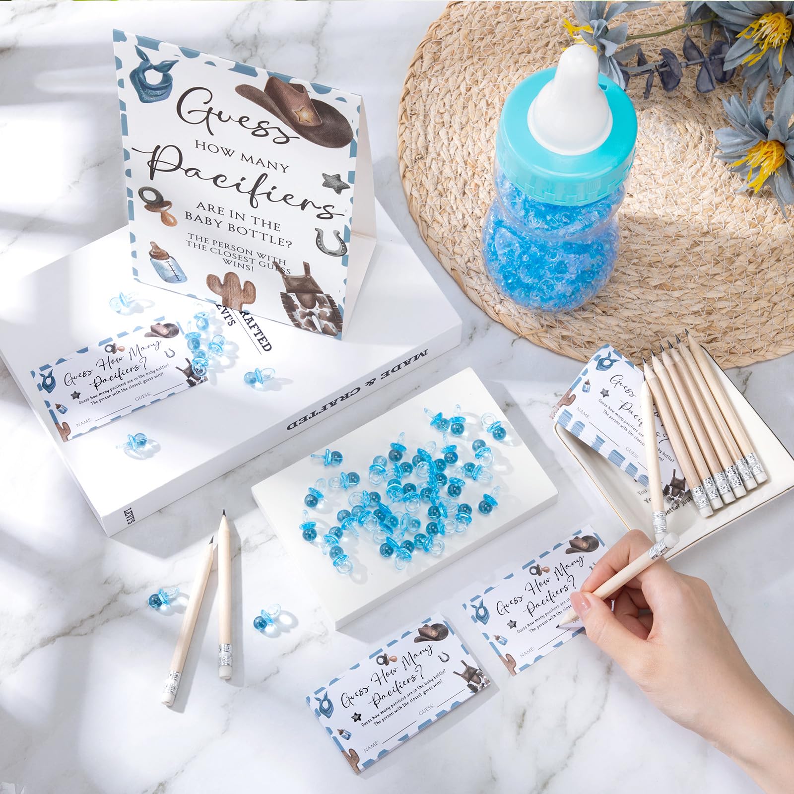 - Greenery Cards Set: you will get 1 piece of Guess How Many Pacifiers game sign, 100 pieces of small cards, 10 piece of HB pencils, 1 piece of milk bottle in 750 ml, and 400 pieces of mini baby pacifiers, which can meet your various demands and bring you a nice playing experience, also ideal for sharing with others