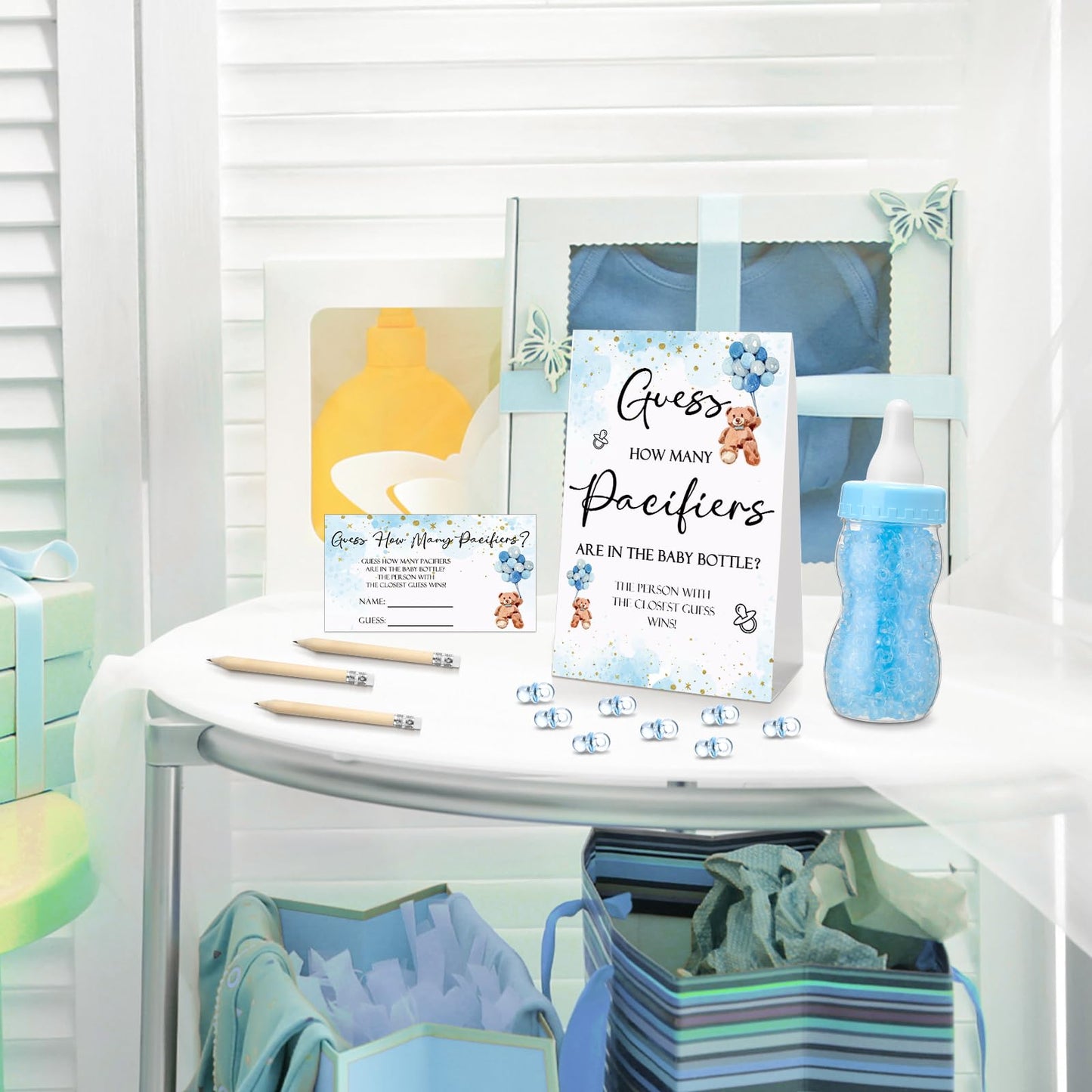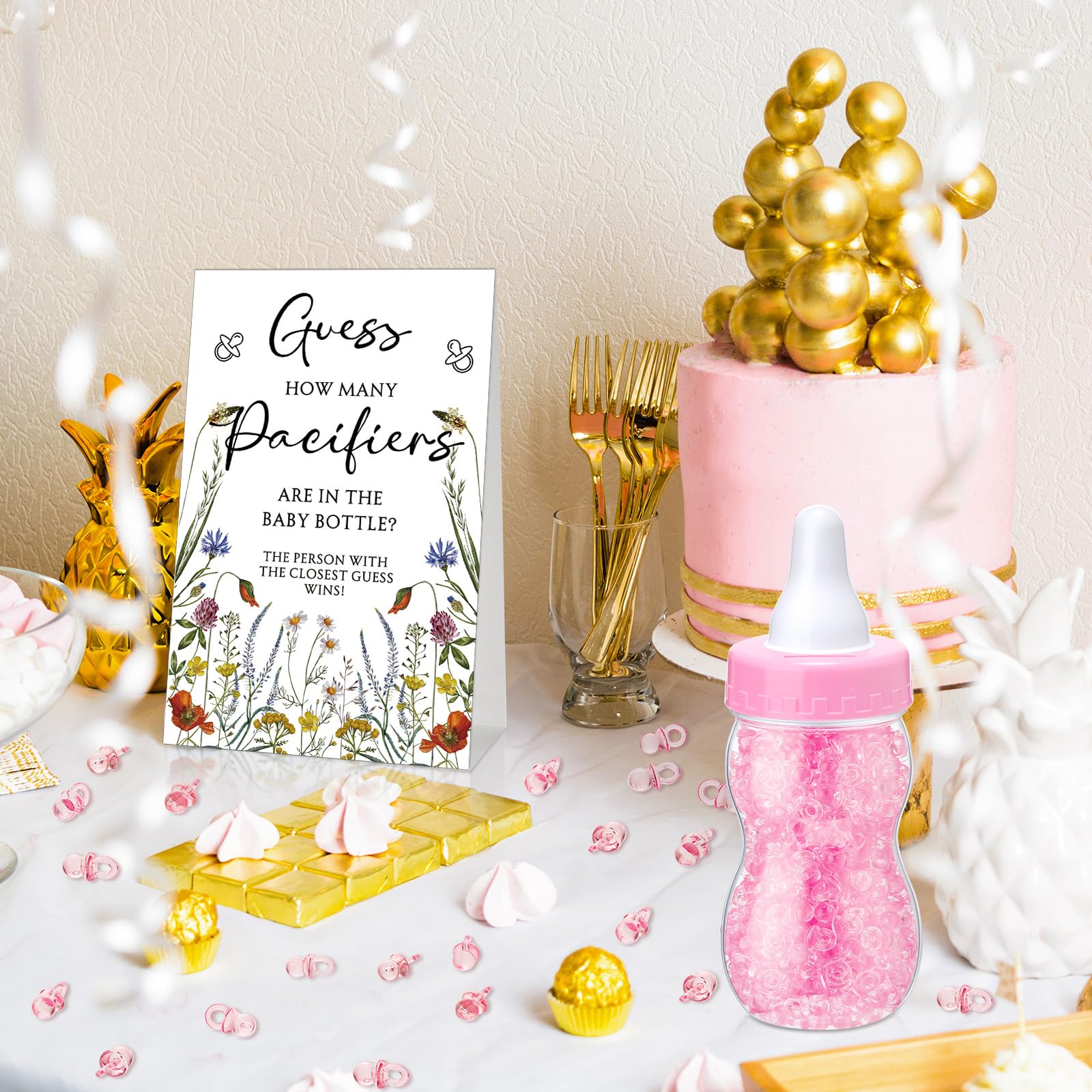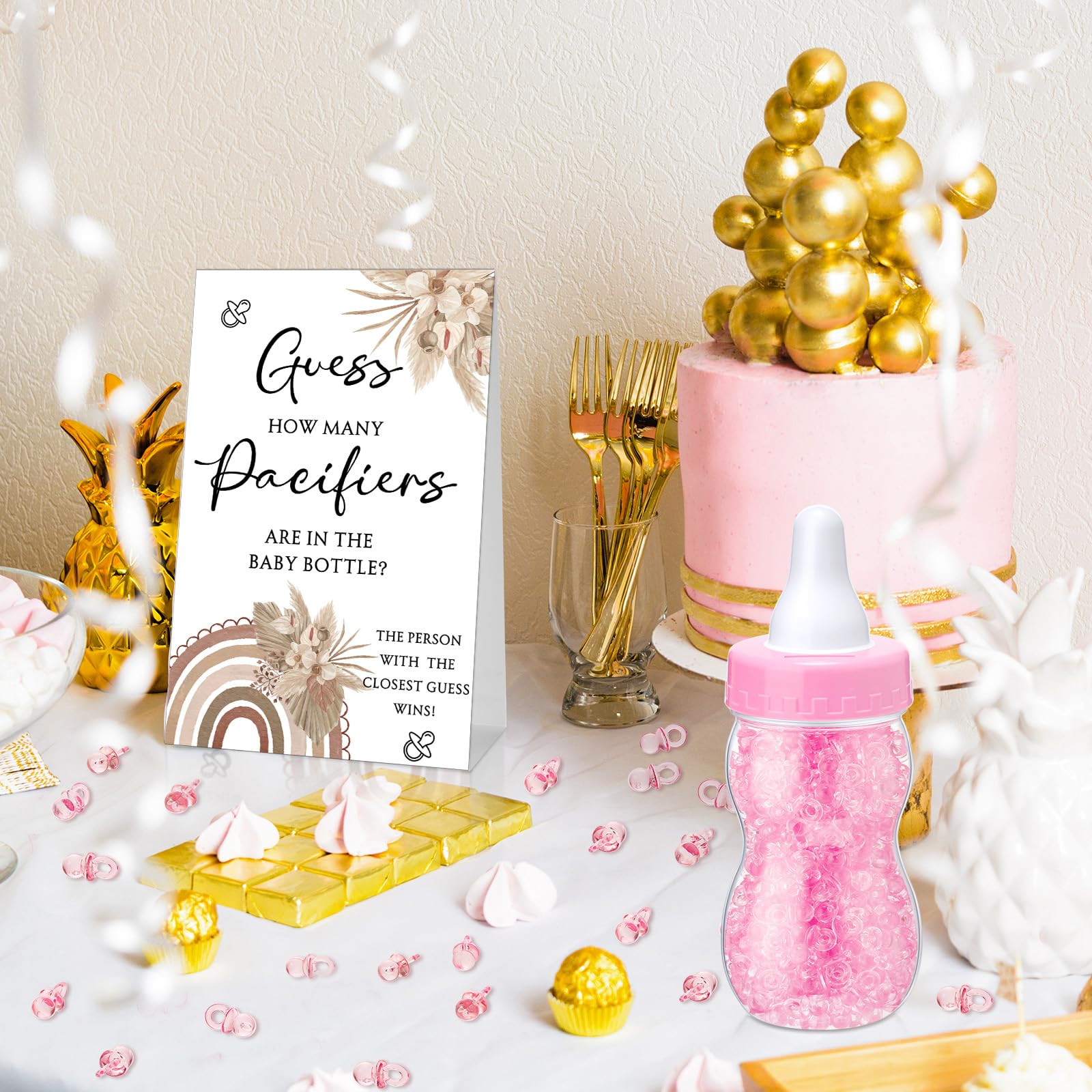 Roowest 512 Pcs Baby Shower Games Guess How Many Pacifiers Sign 100 Small Guessing Games 10 HB Pencils 750ml Milk Bottle 400 Acrylic Pacifiers Decoration for Guest Gender Reveal(Pink,Bear)