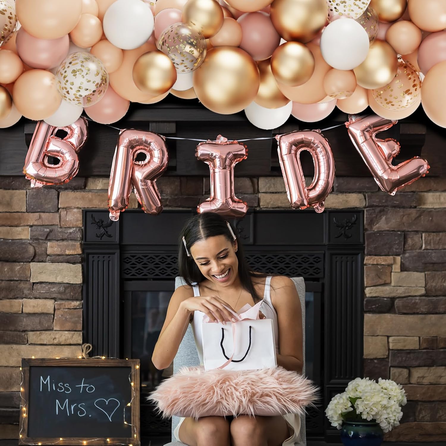- Blush Pink Balloons Garland Kit: Dusty Pink Boho Latex Balloons 33pcs (12"x8, 10"x15, 5"x10); Double Stuffed Cream Peach Nude Balloons 29pcs (12"x8, 10"x13, 5"x8); Chrome Champagne Rose Gold Balloons 15pcs (12"x5, 10"x10); White Baloons 16pcs (12"x3, 10"x8, 5"x5), Gold Confetti Balloons 8pcs (12"x8). 1pcs 100 glue points and 1pcs balloon arch strip. The pink balloon arch kit will create a memorable party for you.