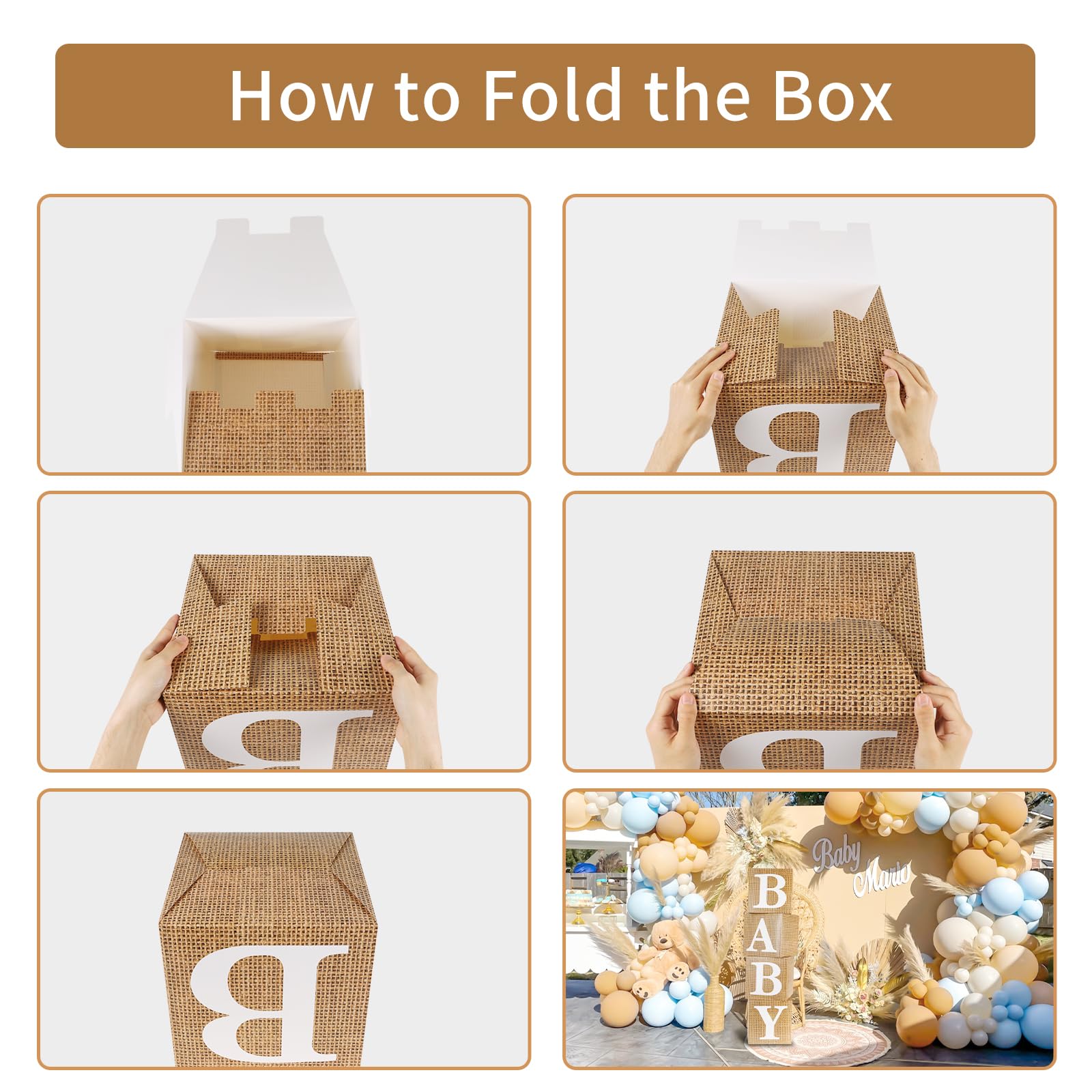 - 【Easy to Assemble】Baby shower balloon boxes are pre-folded and super easy to set up. The assembly picture is in the listing. Also our balloon boxes are made of good quality paper and plastic, which are widely used and reusable.