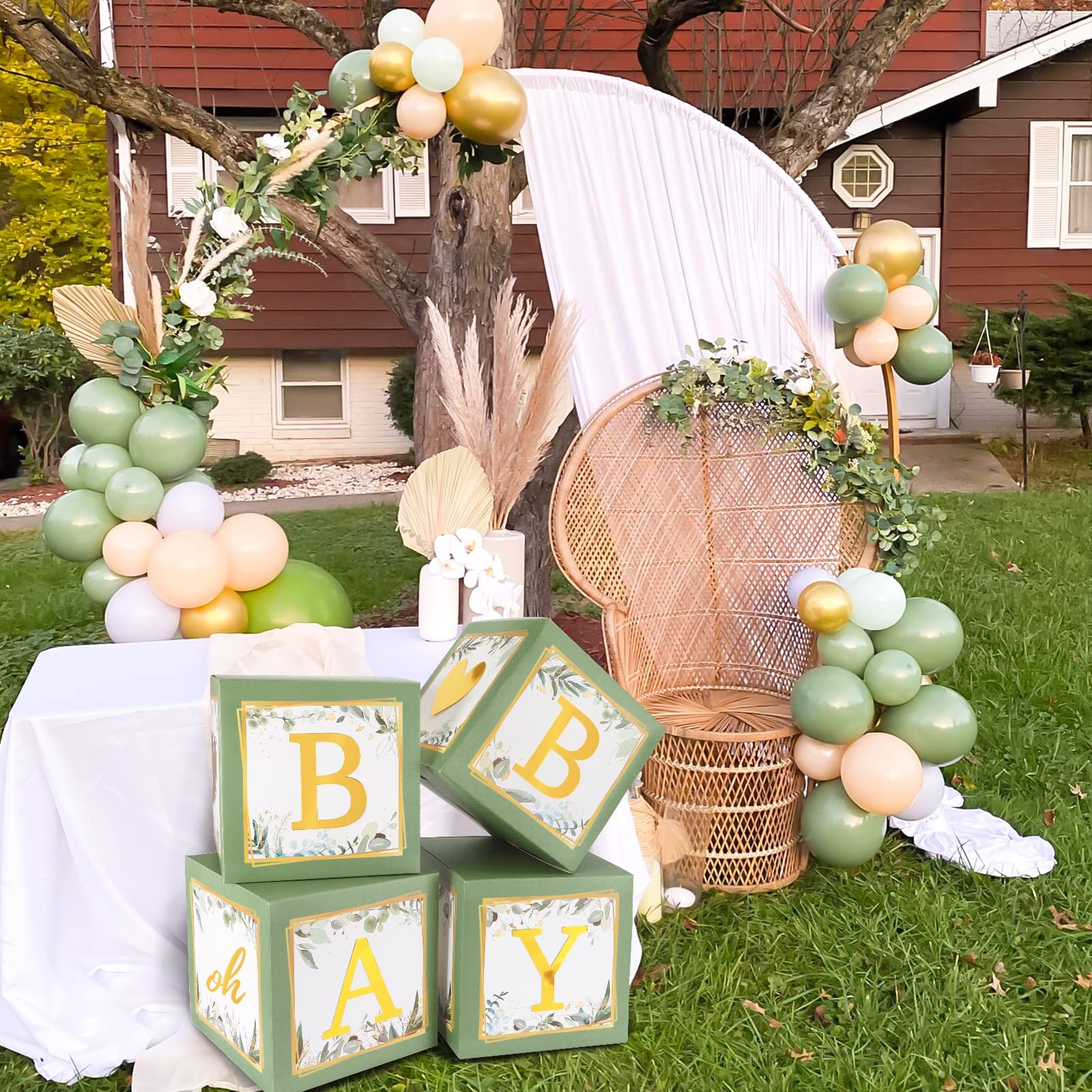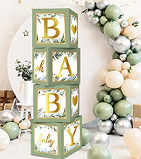 - 【Unique Design】4pcs sage green baby shower boxes with 3 sets of letters "B A B Y" and lovely heart symbol of heart, individual "oh", "baby", adhesive dots also included. After putting up the balloon boxes, we believe that your will have an enjoyment time.
