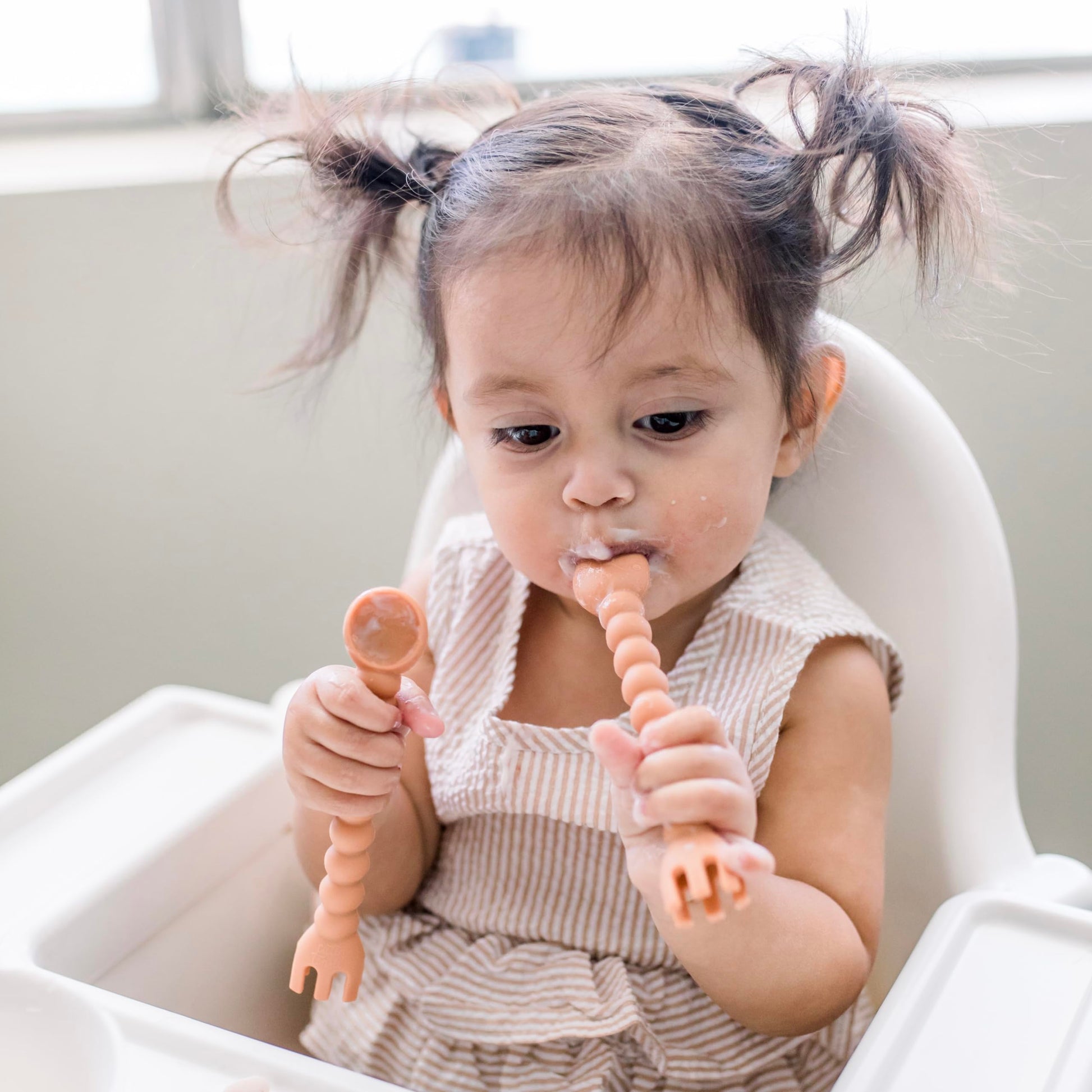 - Baby-Led Weaning Utensils: Baby-led weaning encourages self-feeding and independence in your child. When practicing this method, baby spoons self-feeding at 6+ months are essential. These baby spoons are designed to be easy to grasp and promote your baby's exploration of different textures and tastes.