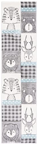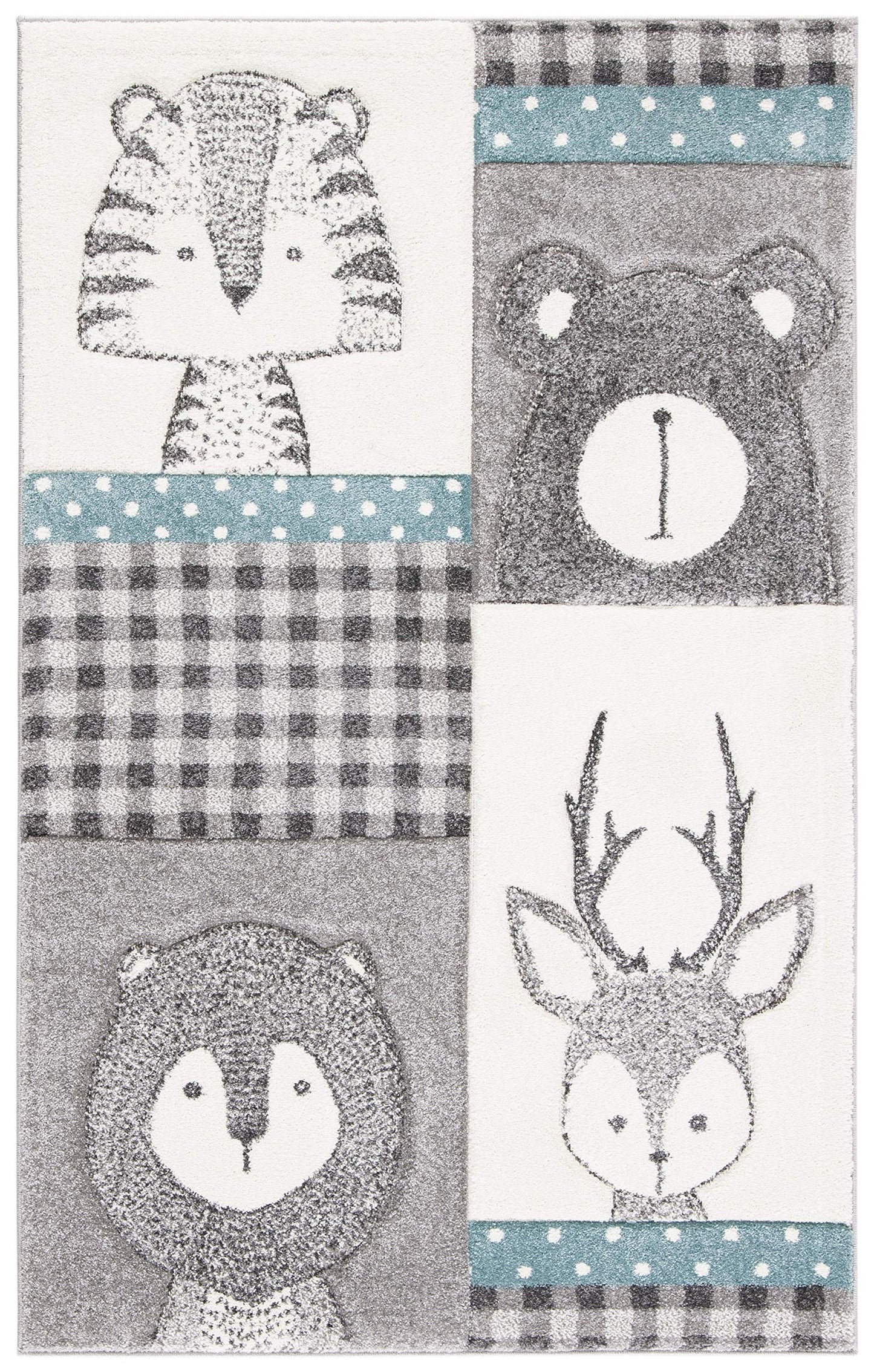 SAFAVIEH Carousel Kids Collection Area Rug - 5'3" Round, Grey & Ivory, Animal Design, Non-Shedding & Easy Care, Ideal for High Traffic Areas for Boys & Girls in Playroom, Nursery, Bedroom (CRK188B)