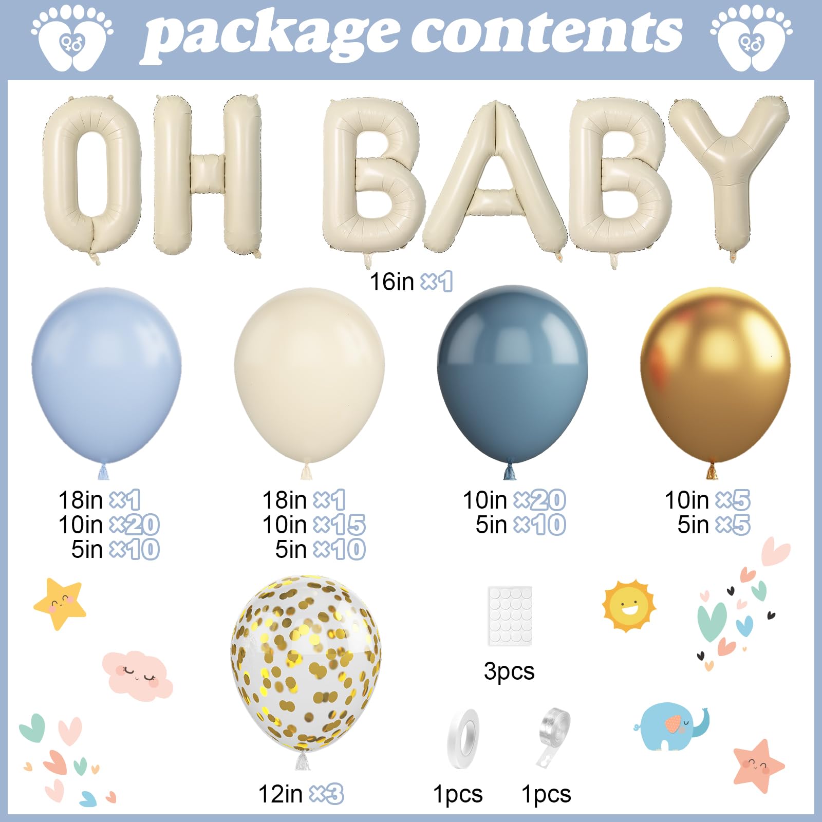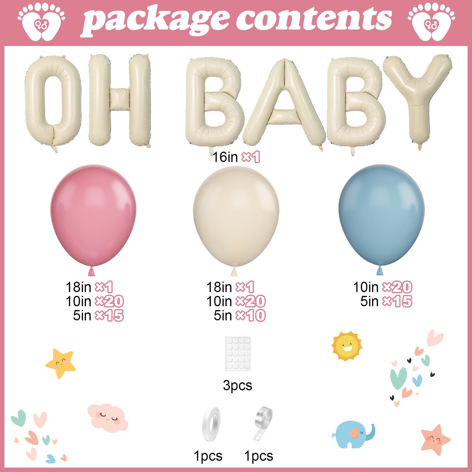 - EASY TO ASSEMBLE:The baby shower decorations boy girl balloons arch garland kit need to do is inflate oh baby baby shower balloons decoration and then hang them on the wall,door or any place you want to decorate.Everyone can enjoy the festive atmosphere.