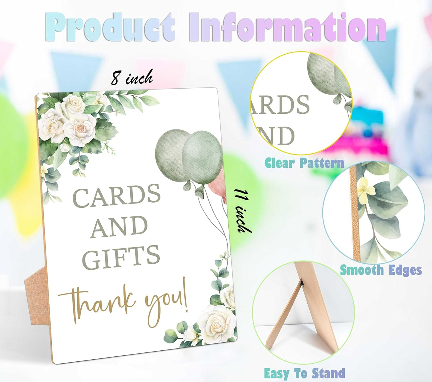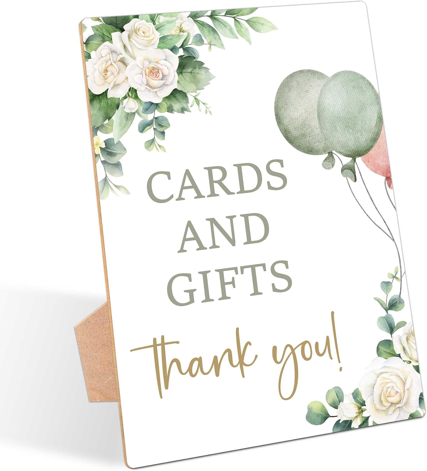 Sage Green Baby Shower Table Sign, Cards and Gifts Sign, Pack of 1 Wooden Tabletop Sign with Stand, Greenery Balloons Baby Shower Supplies, Gender Reveal Party Decorations - RG02