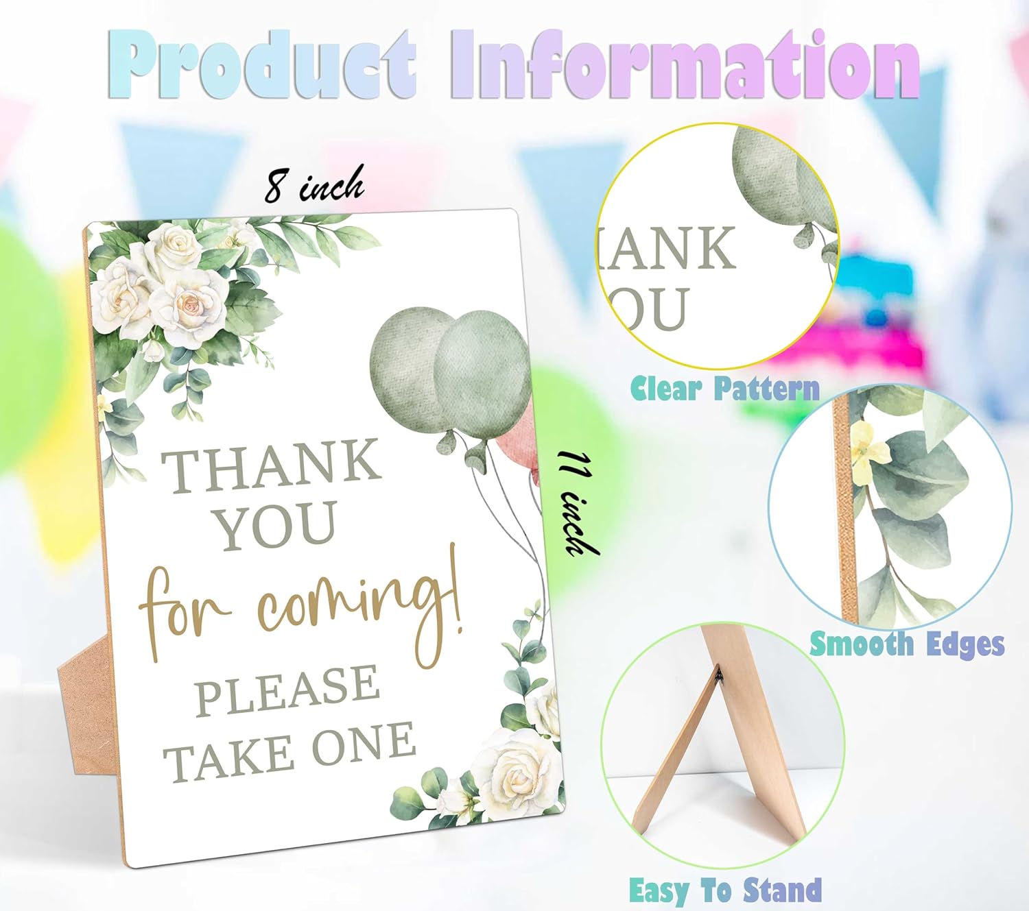 - What You Can Get: You will receive an 8" x 11" wooden tabletop baby shower sign to decorate your baby shower reception and enhance the ambiance of your special day.