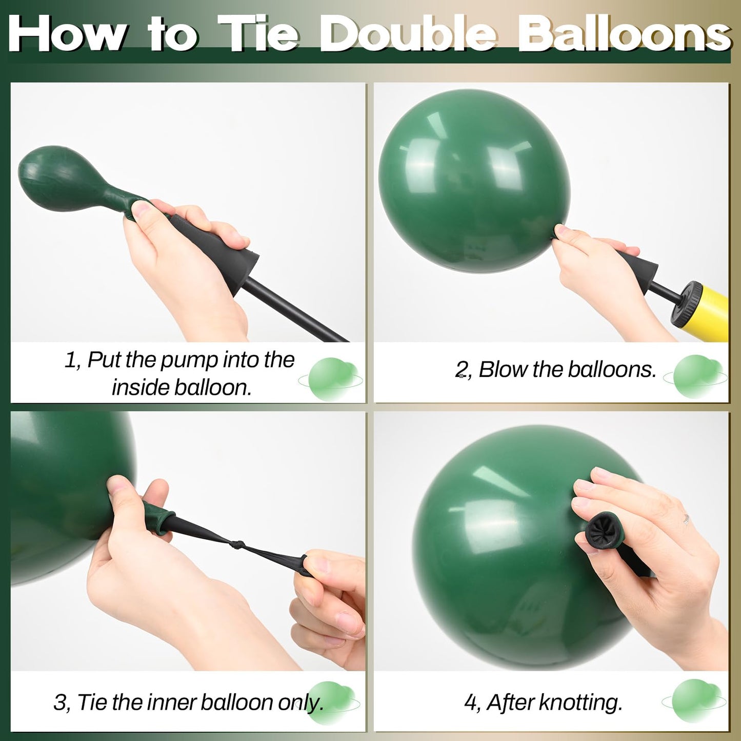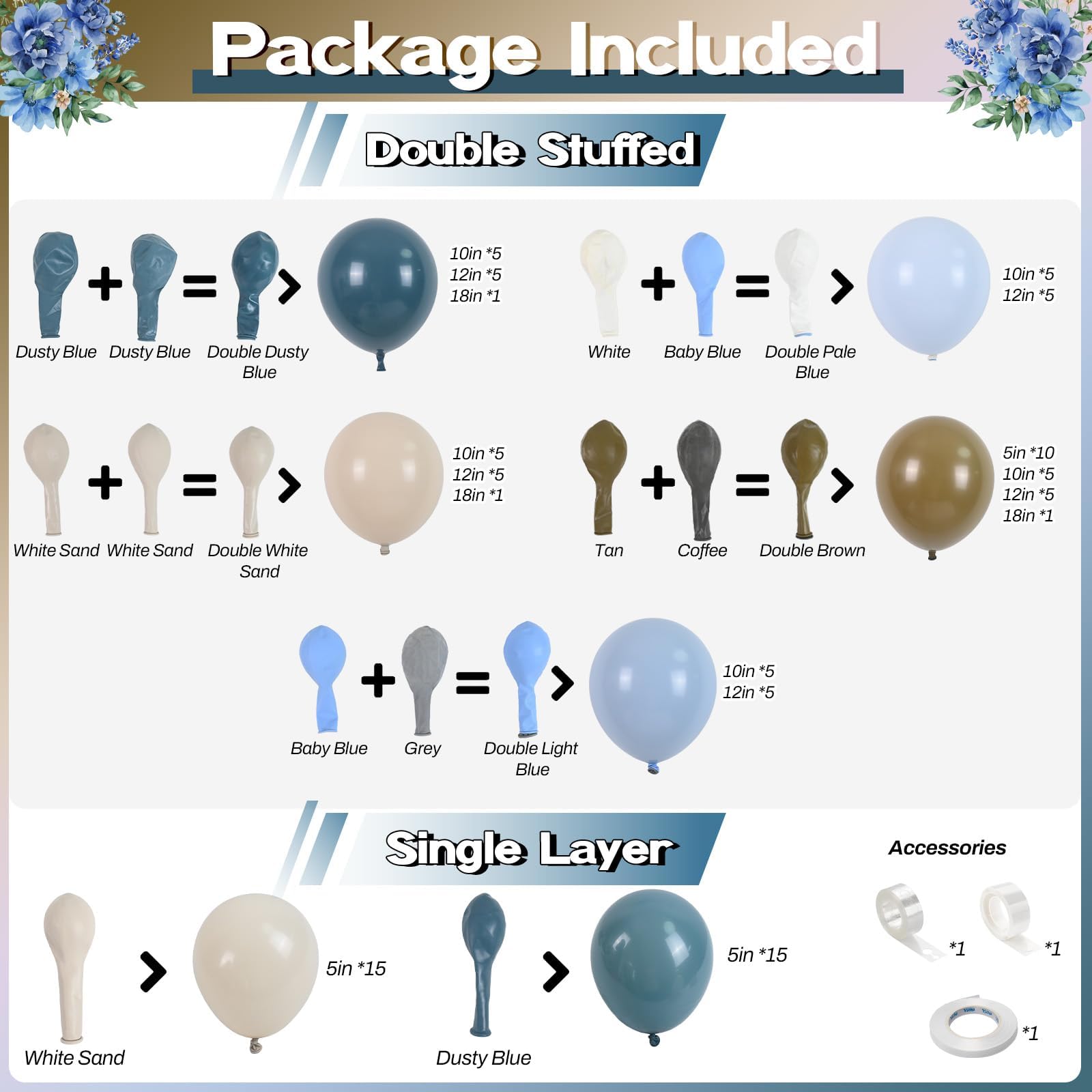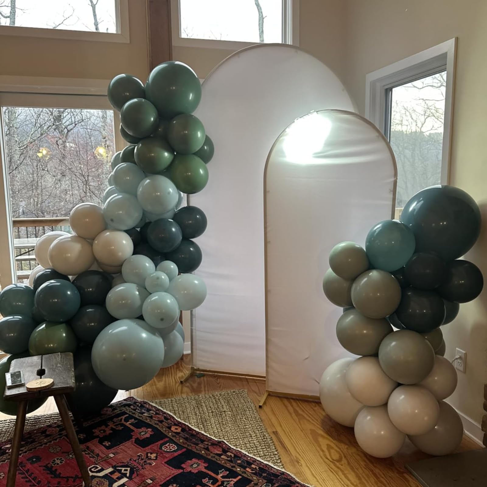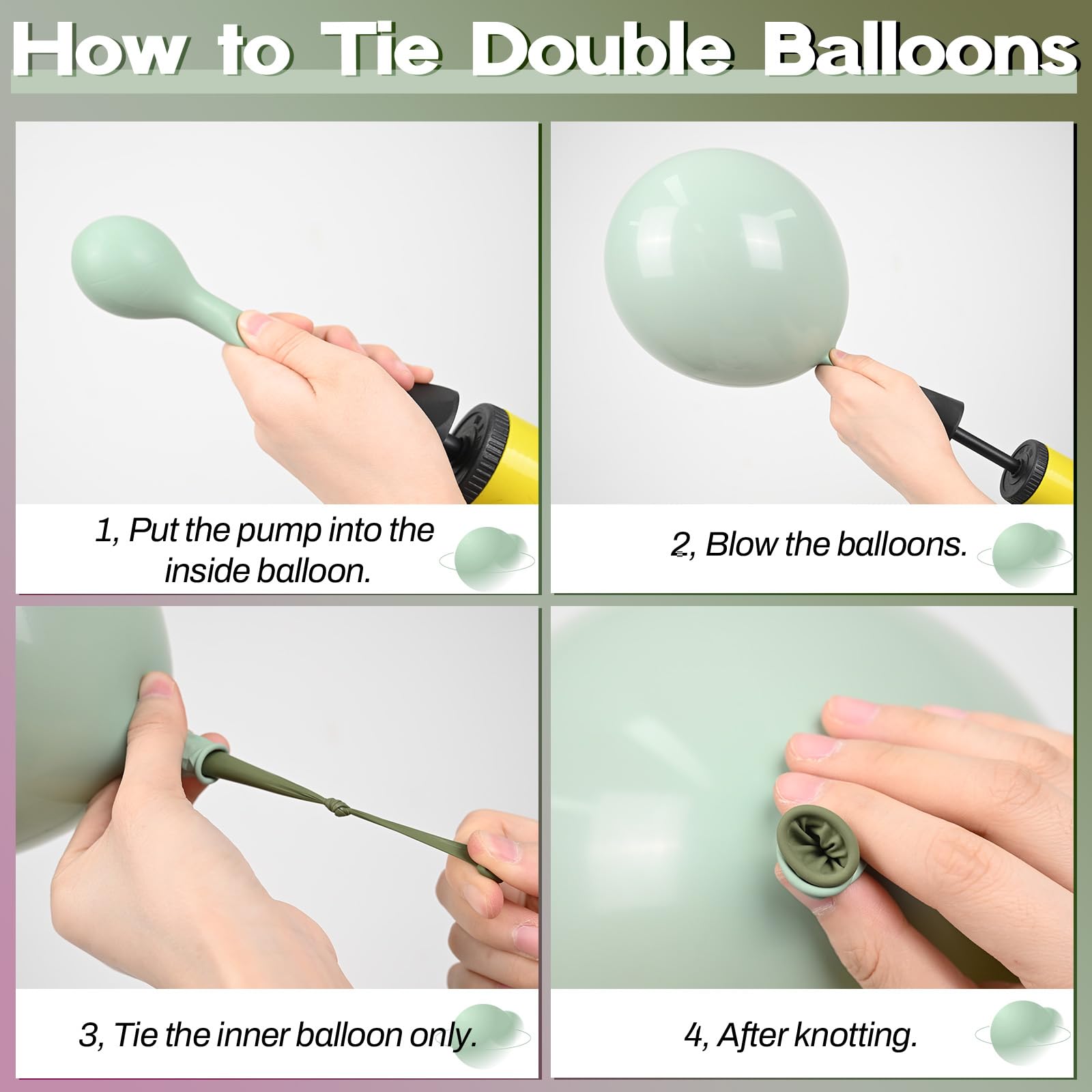 - Double Stuffed Balloon: This balloons arch set delivers complete party decorations. It includes Sage green (18in*1+12in*5+10in*5+5in*10), olive green (18in*1+12in*5+10in*5+5in*10), apricot (18in*1+12in*5+10in*5+5in*10), beige (18in*1+12in*5+10in*5+5in*10), ribbon, dot glue and balloon chain. Our balloon garland kits create the perfect party for you!