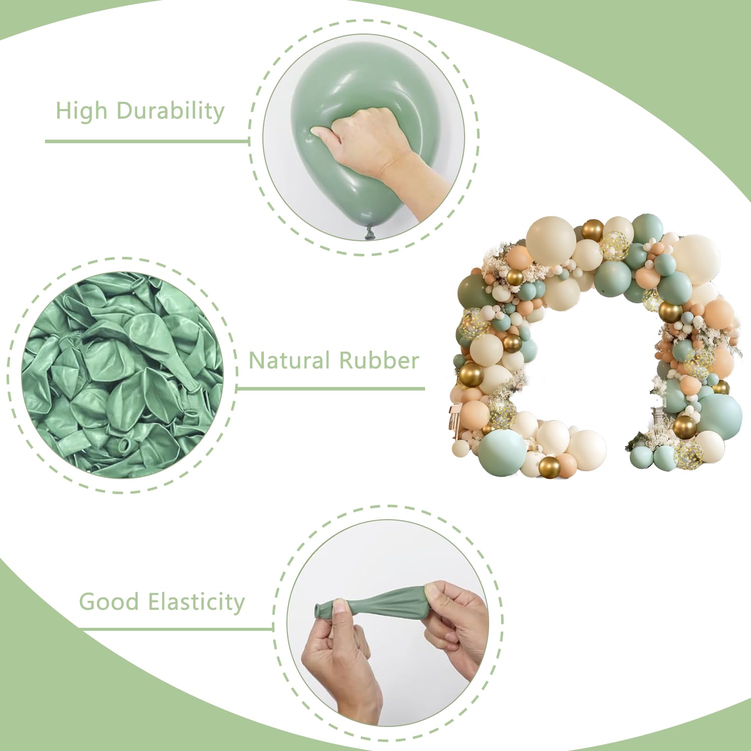 - Premium Latex Materials: The green pink and white balloon arch kit is made of high quality latex material. These sage green and gold balloons balloons are durable and thick, unbreakable and true to color. If you tie them tight, they can last for several days.