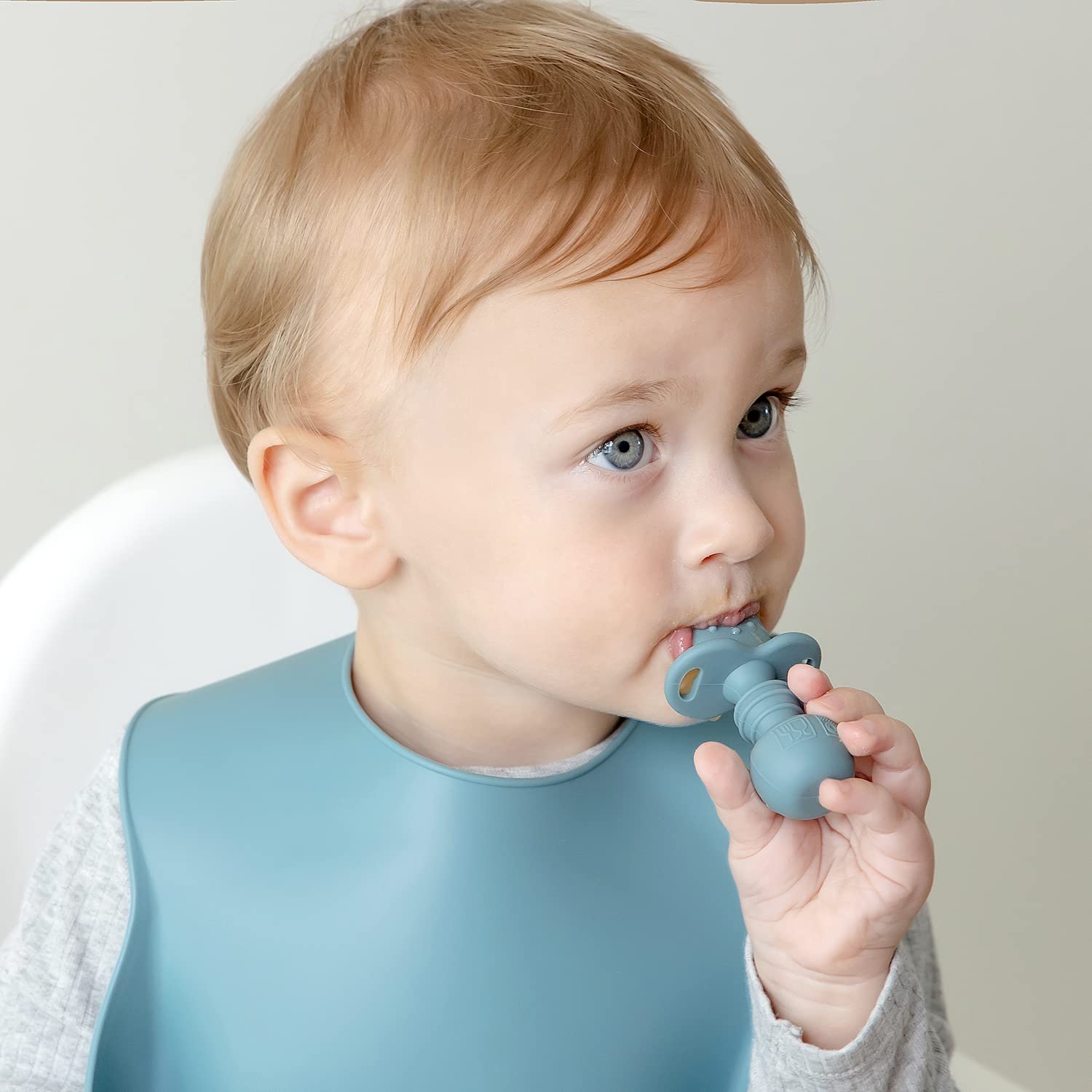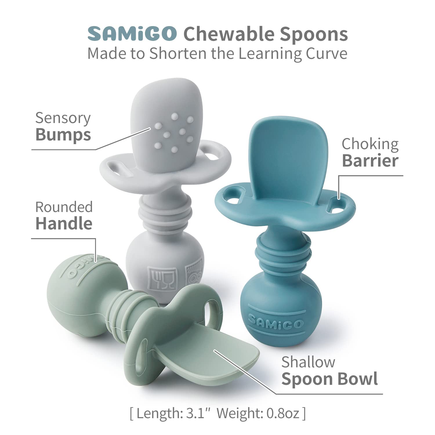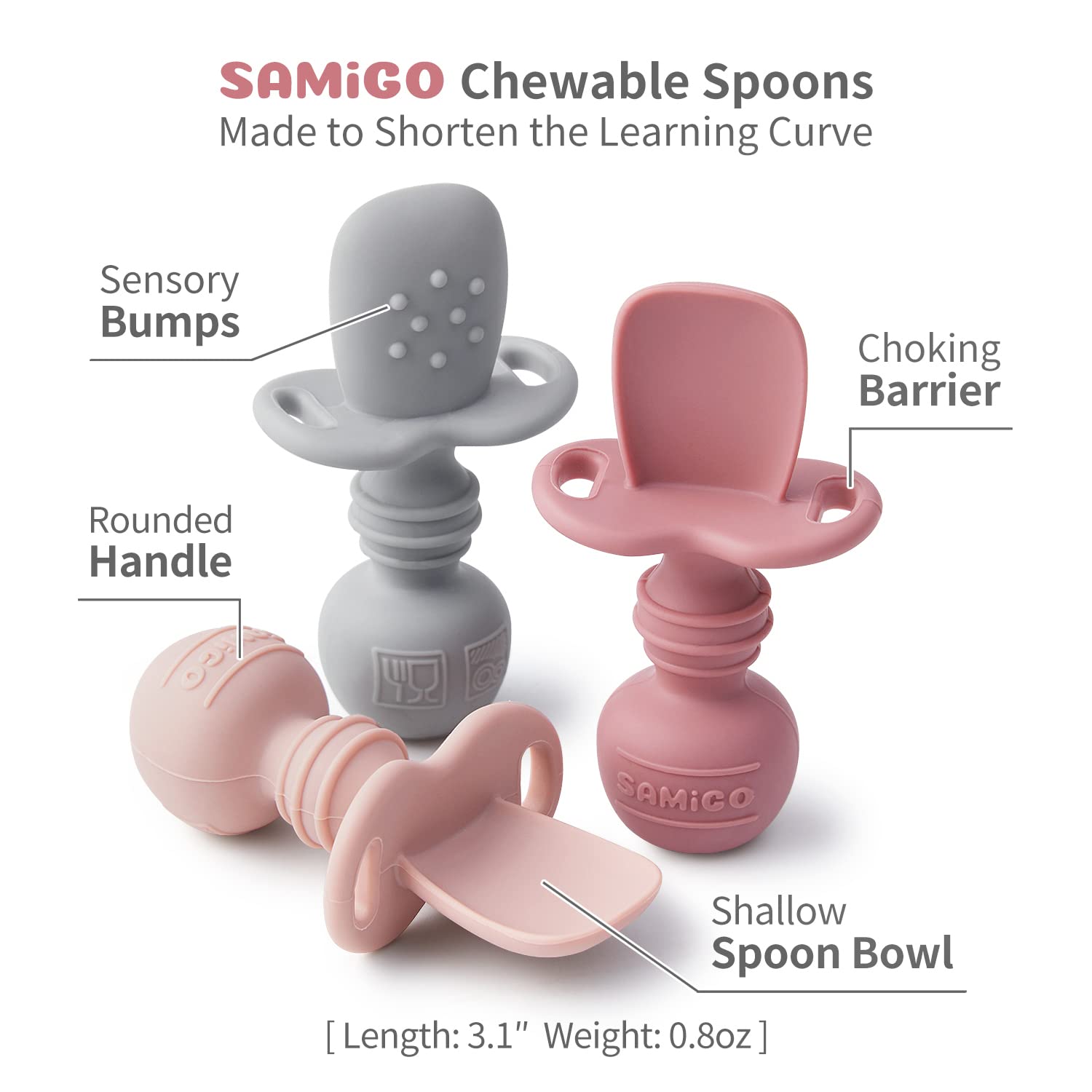 - Master Utensils Effortlessly - Featuring a stubby handle and sensory bumps, our spoon is smartly shaped and sized for babies to figure out how to hold, scoop and bite in no time. With a built-in stopper, choking is no longer a thing.