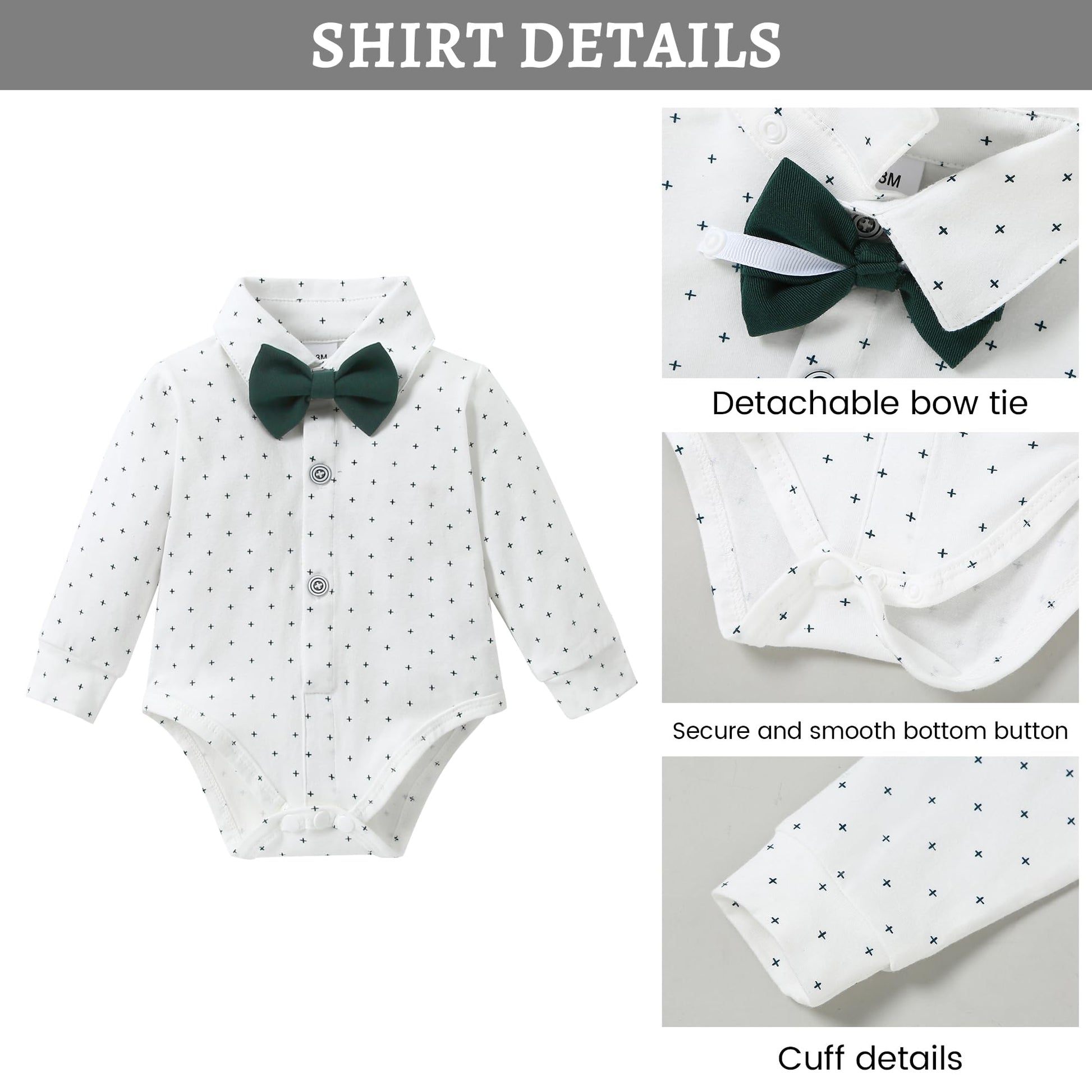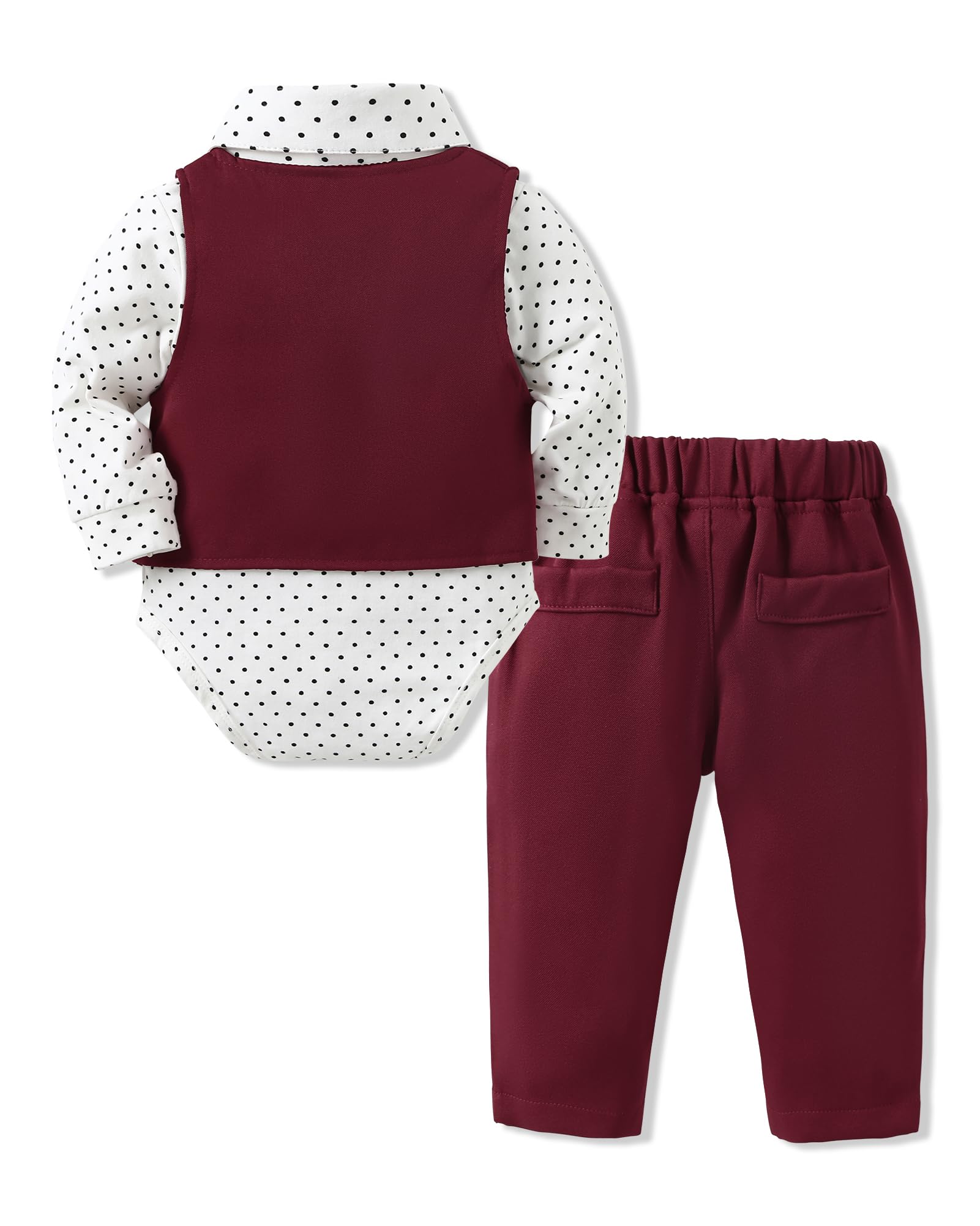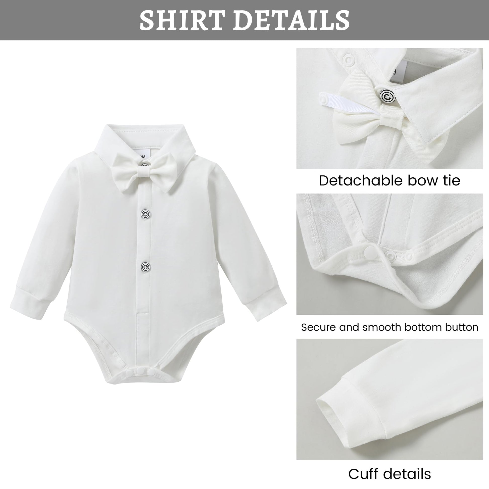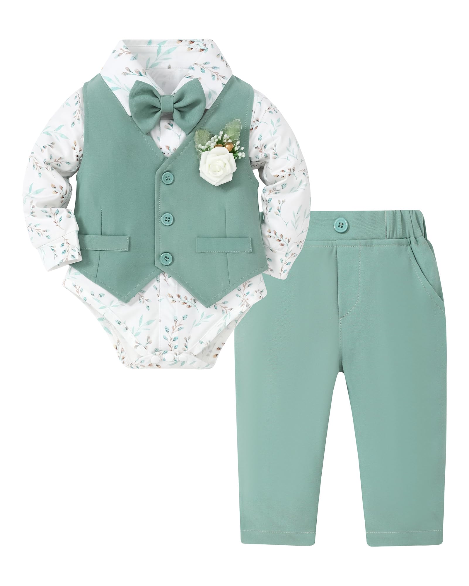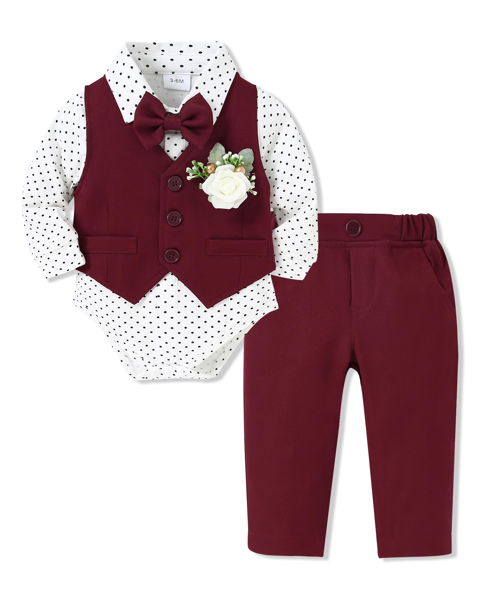 • Occasion:The baby tuxedo include 1pcs Shirt,1pcs Bowtie,1pcs Vest,1pcs Boutonniere,1pcs Pants.These baby boy dress clothes offer versatility in styling suitable for baby boy easter outfit,baby boy church outfit, Easter, Baptism,party and so on