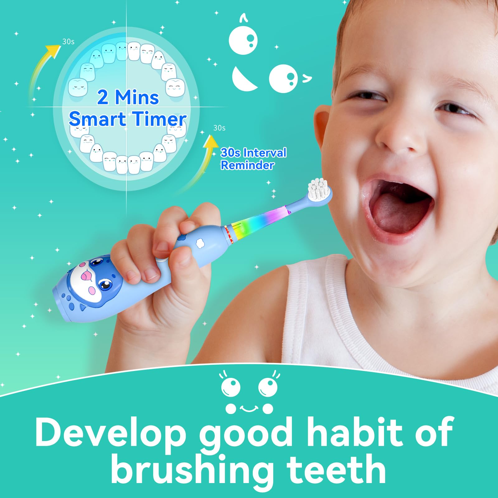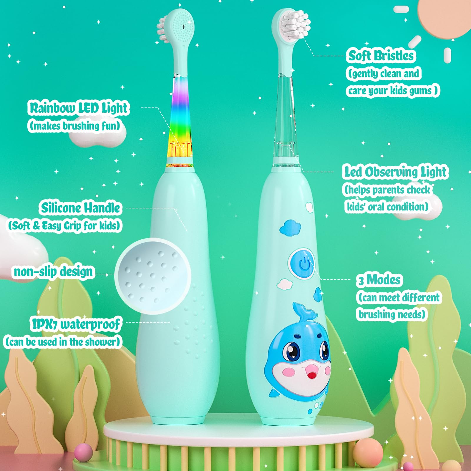 - Specially Toothbrushes Designed for Your Toddler: The colorful LED light will not only let toddlers enjoy the brushing time but also help the parents to check out the kid's oral. Child-friendly, non-slip electric toothbrush handle is easy for children to grip
