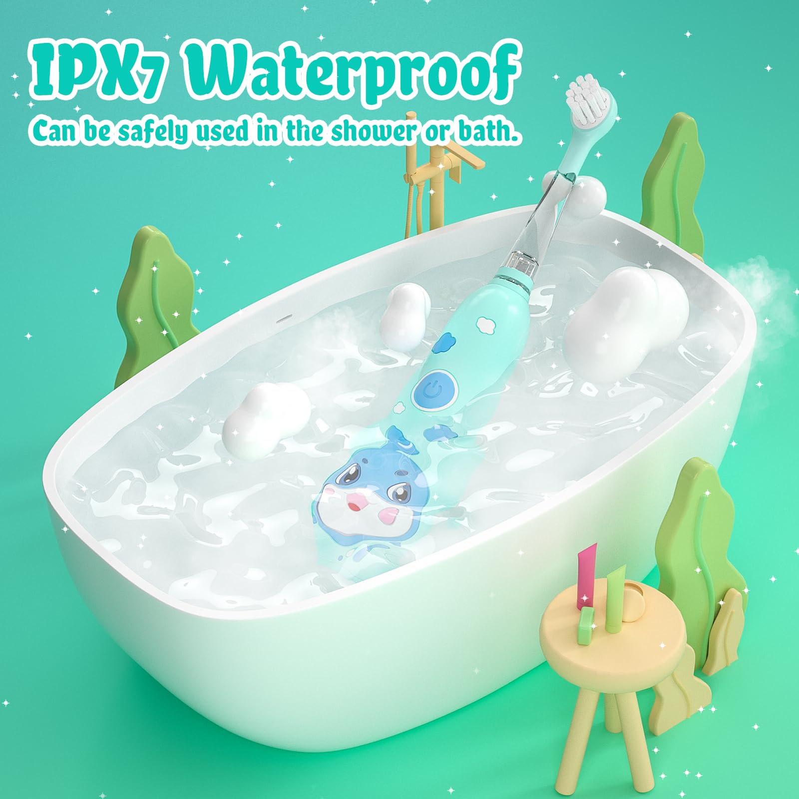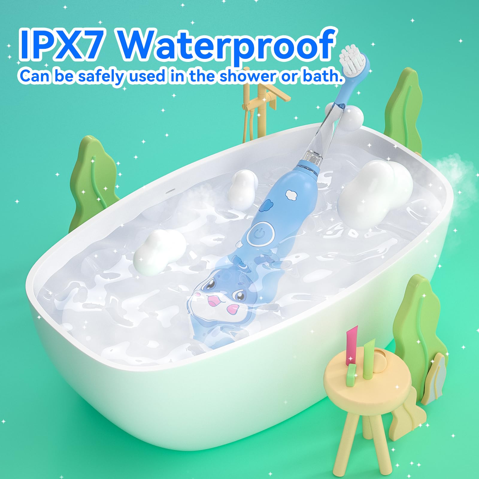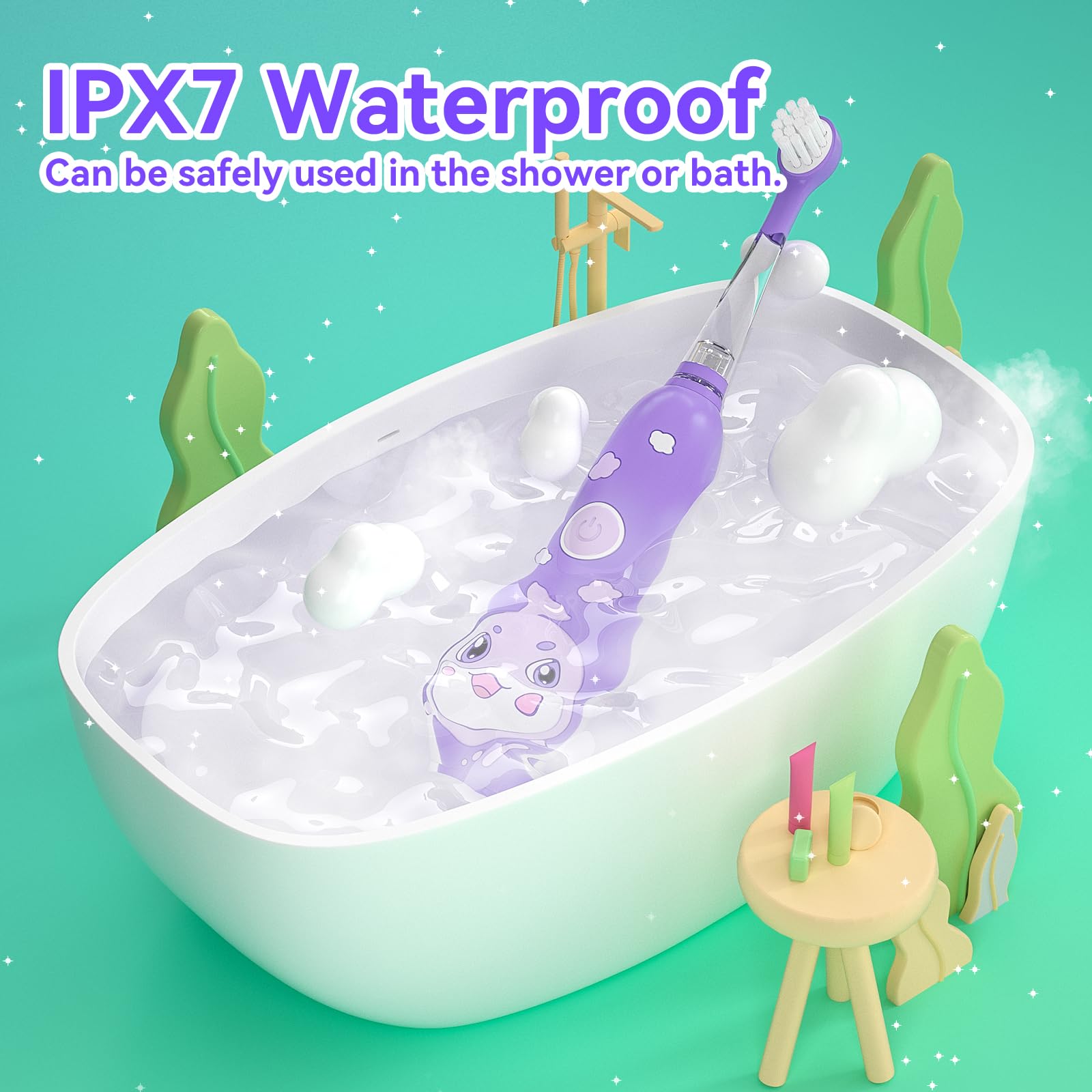 - Rechargeable, Fast and More Safe: Magnetic Charging technology, toddler electric toothbrushes rechargeable is fully charged in 4 hours and the battery lasts up to 60 days. IPX7 waterproof is designed for safe use in the bathroom or shower