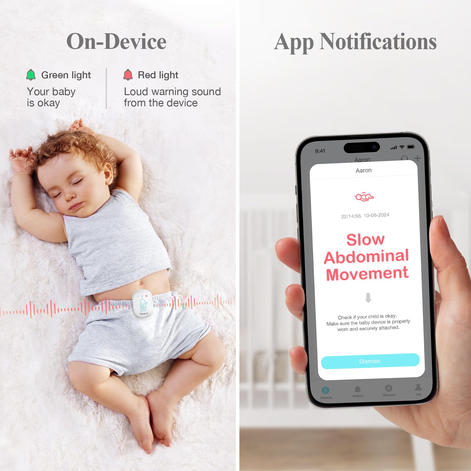 With arousal vibration, audible and app alerts for no abdominal movement, rollover & overheating.