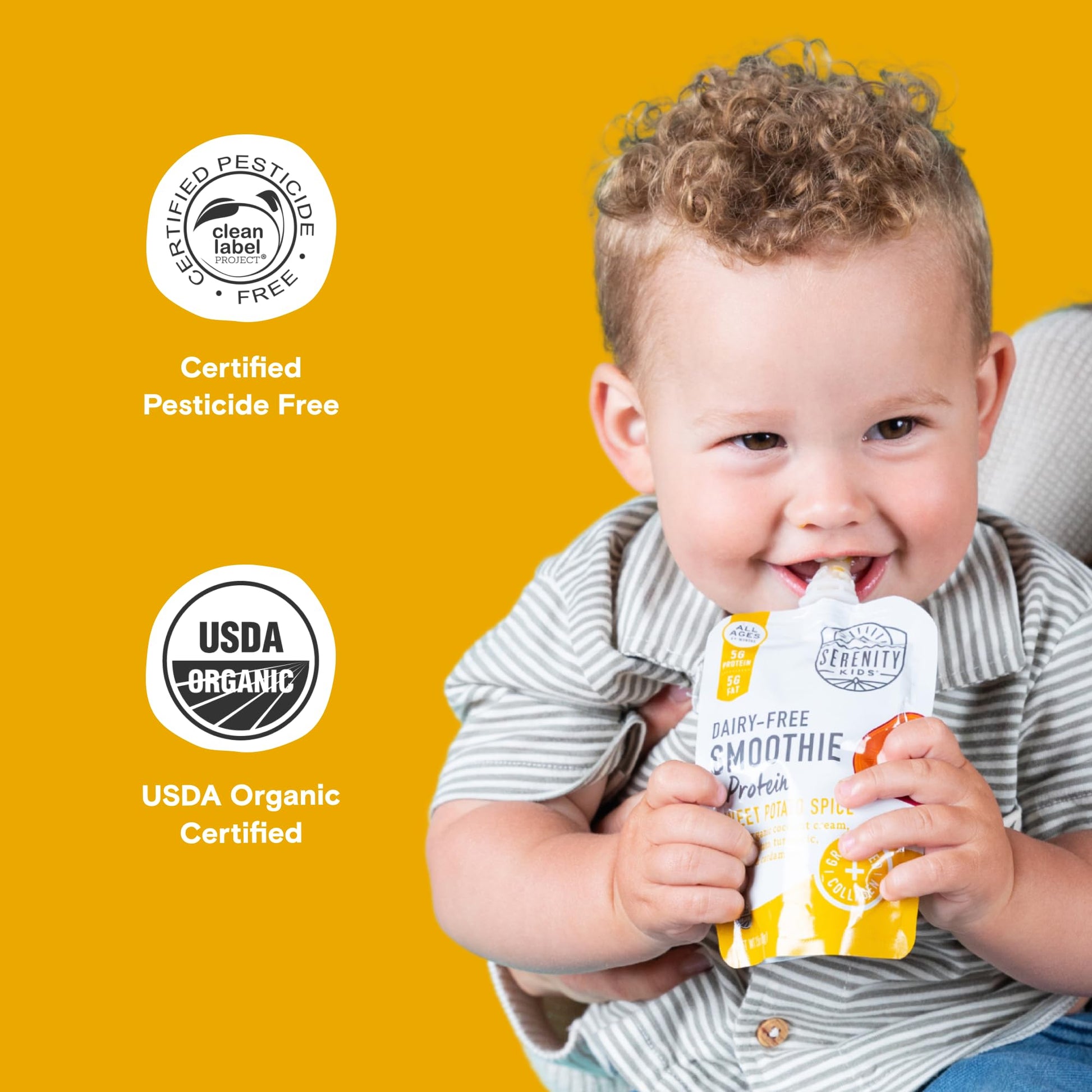 - MINDFULLY MADE: The dairy free smoothie pouch made to mimic the macronutrients of breast milk, our smoothies include ethically sourced meats, organic vegetables, and healthy fats. Free of artificial flavors and allergens, perfect for Serenity Kids baby food pouches for 6 months and up