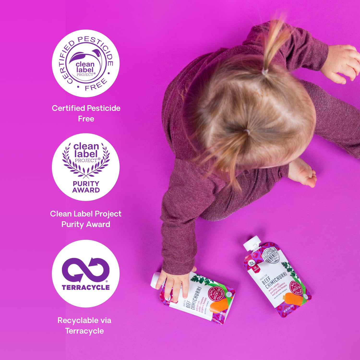 - ORGANIC INGREDIENTS: Our beef chimichurri baby food pouches are made with organic veggies and ethically sourced meat, offering pure deliciousness in every bite. Perfect as a beef baby food pouch for your 6-month-old baby