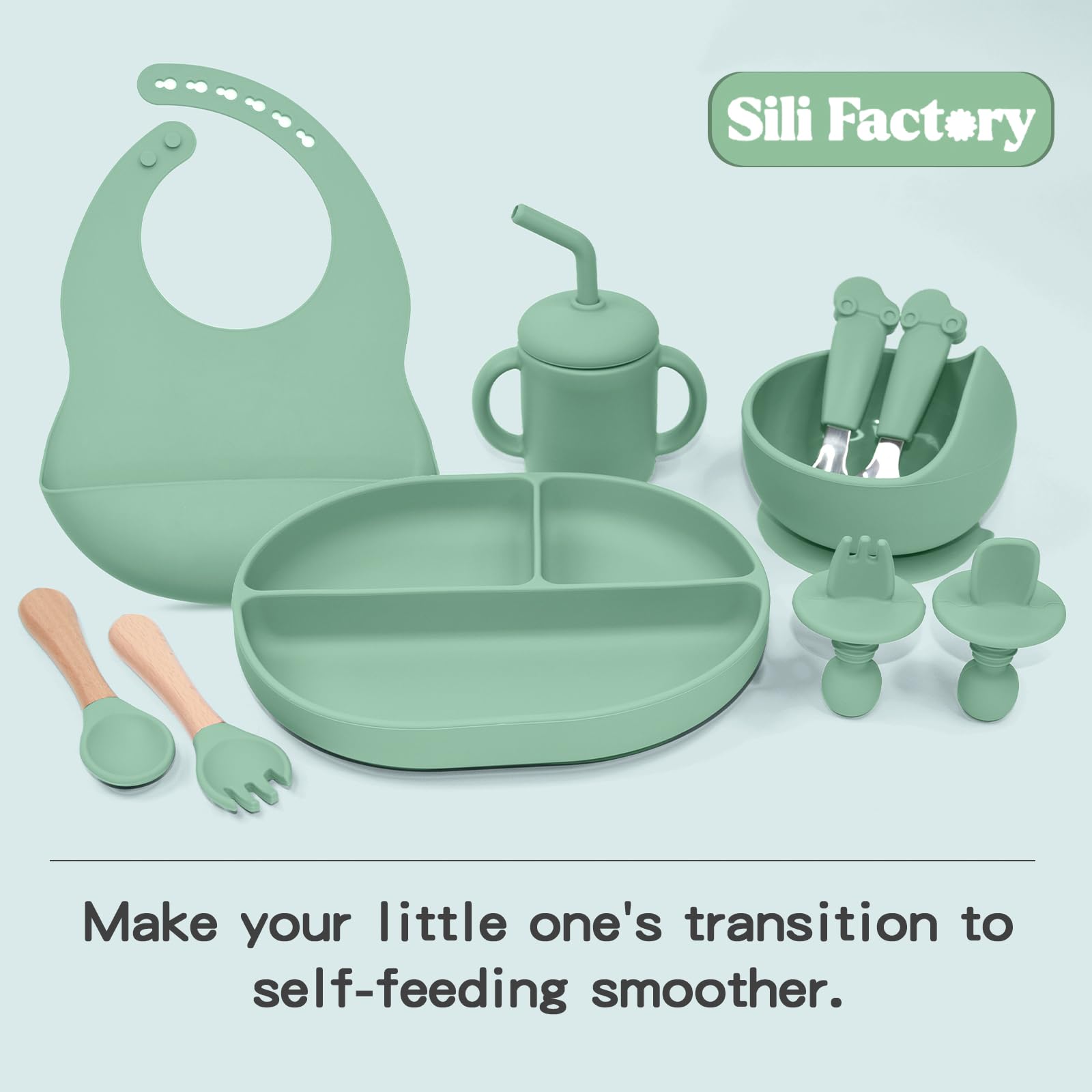 SILI FACTORY Silicone Baby Feeding Set, 10PCS Baby Led Weaning Supplies with ...