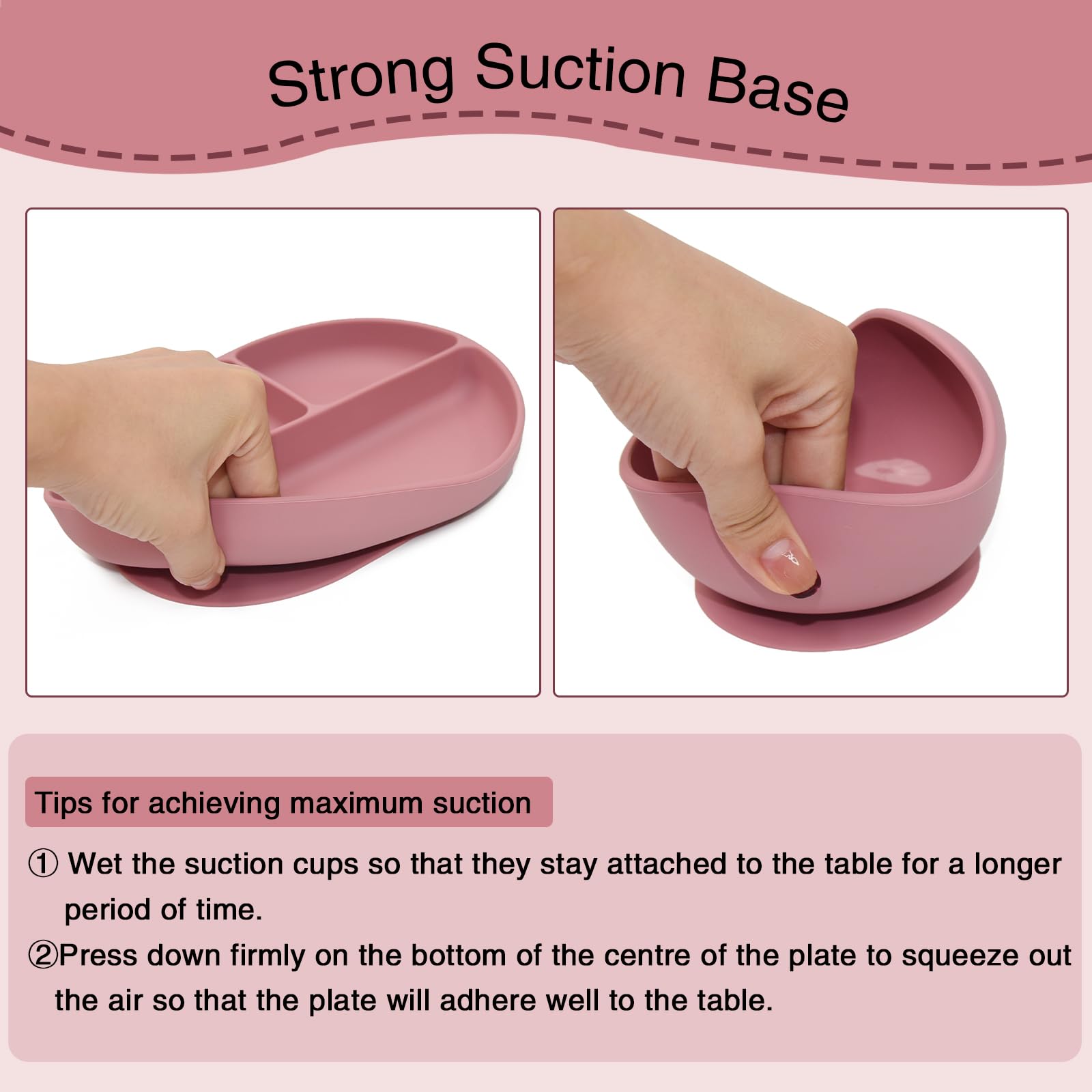 - 【Strong Suction Power】Baby plates and bowls set can easily attach to any surface, thanks to a larger suction base, which can generate ultimate suction and no longer have food plate overturned or thrown off high chairs!! Let your baby start learning self feeding.