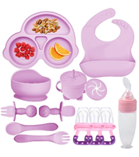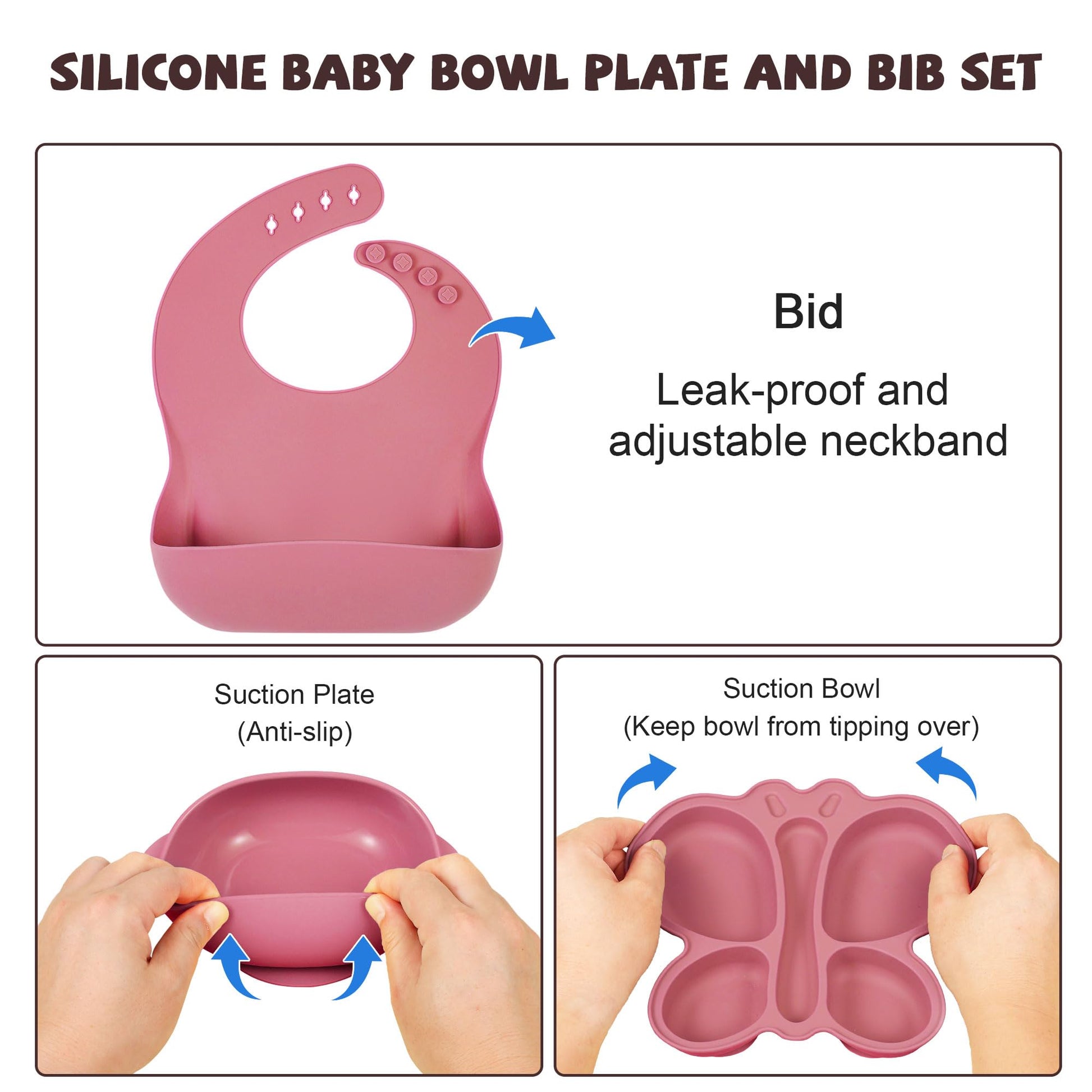 - A Durable Dining Set: Silicone baby led weaning set is hard to stain or damage and won't hurt a teething toddler's gums. It's also soft, sturdy, flexible, and without sharp edges. The baby feeding set includes everything you need for baby feeding