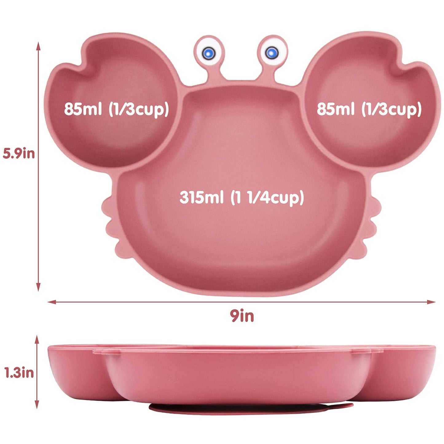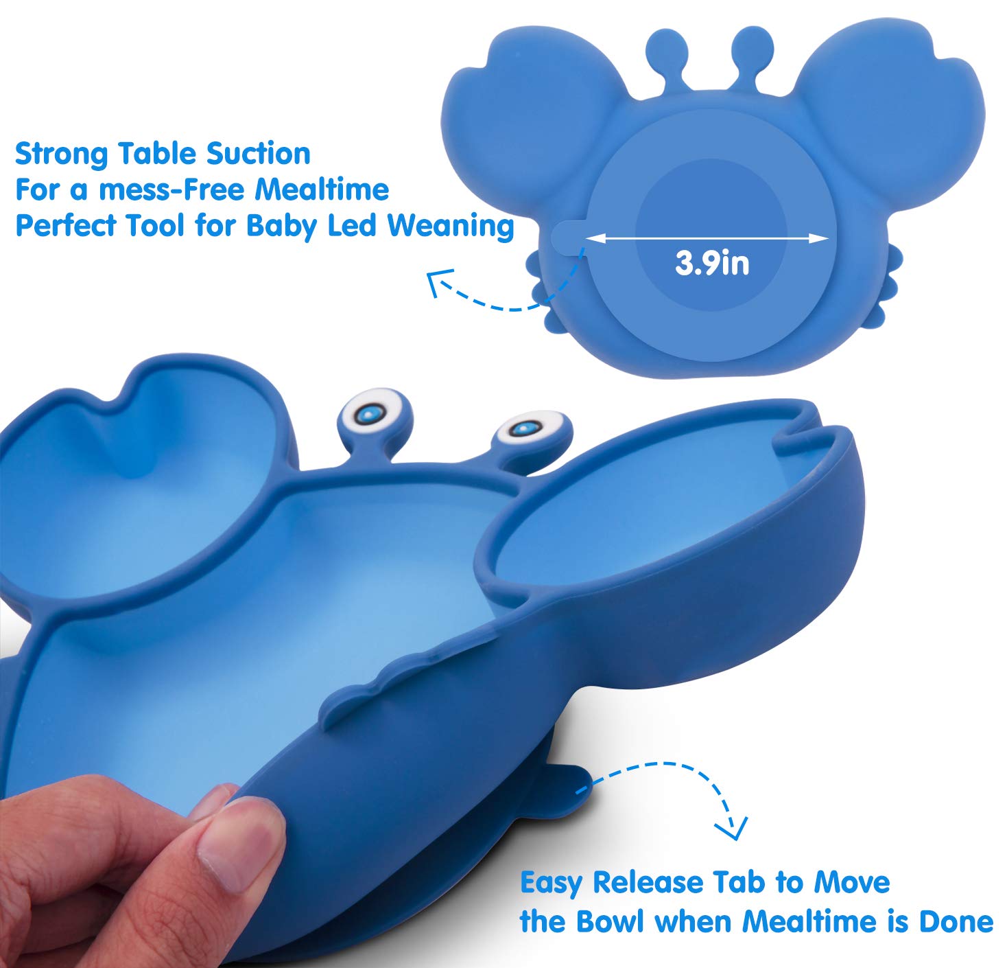 - The baby led weaning plate designed in cute crab-shaped, which attract your little ones' interest & make fun meal time.