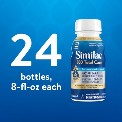 Similac 360 Total Care Infant Formula, Has 5 HMO Prebiotics, Our Closest Prebiotic Blend to Breast Milk, Non-GMO, Baby Formula, Ready to Feed, 8-fl-oz Bottle, Pack of 24