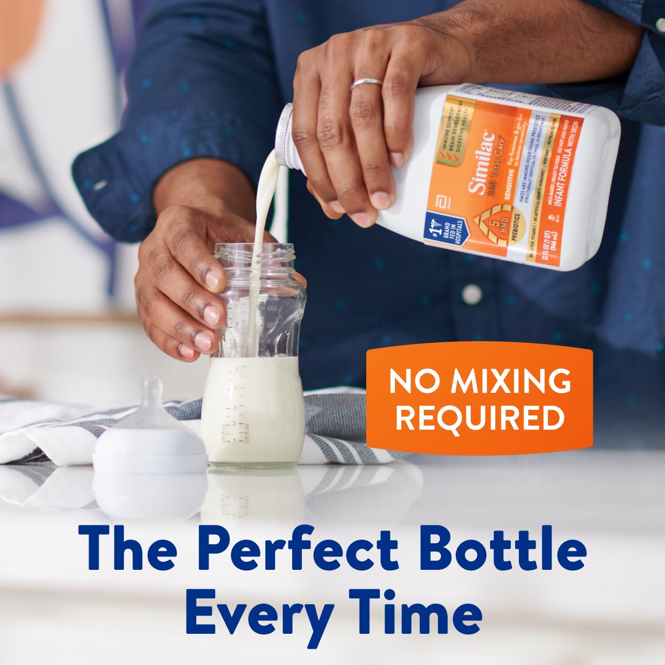 Similac 360 Total Care Sensitive Infant Formula for Fussiness & Gas Due to Lactose Sensitivity, Has 5 HMO Prebiotics, Non-GMO, Baby Formula, Ready to Feed, 8-fl-oz Bottle, Pack of 24