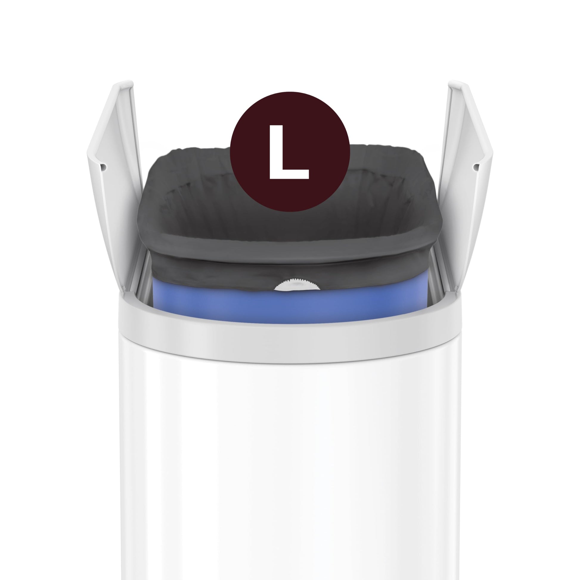 Designed specifically for diapers, the tight-closing butterfly lid, odorsorb pod and carbon-infused odorsorb liners work together to contain and neutralize odors. The diaper can’s slim, space-efficient shape makes the most of tight spaces, unlike typical round-shaped diaper pails. Its strong steel pedal and our patented lid shox technology ensure the can will function smoothly and quietly for years. Our Code L custom fit liner fits this can perfectly — no bunching or slipping for a cleaner experience.