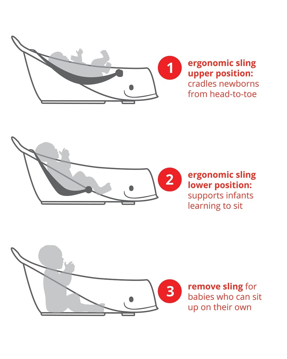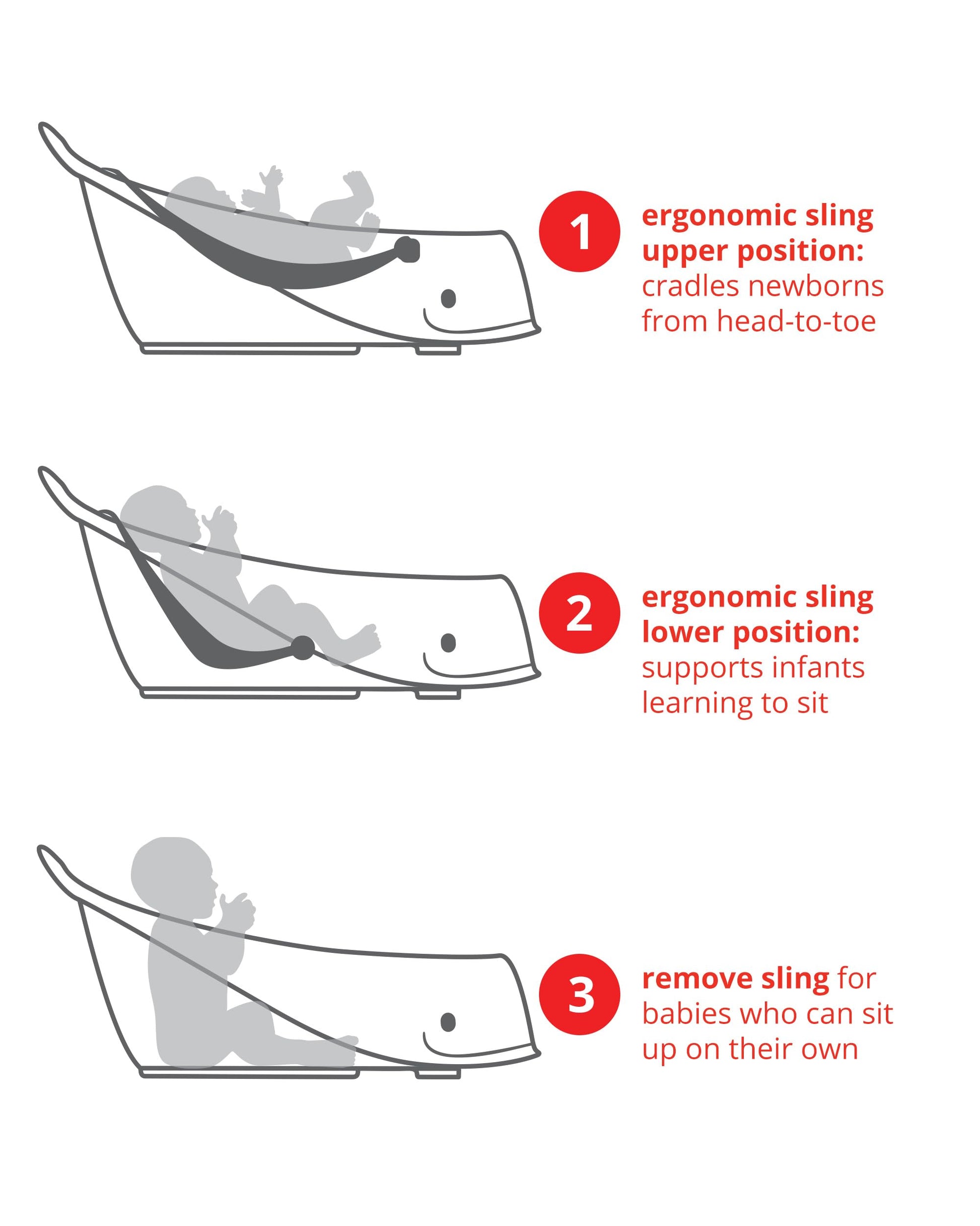 Designed to grow with baby in four stages—from infant to toddler—meet the only tub parents need! Filled to the brim with innovative details for baby’s comfort, our Wave 4-in-1 Baby Tub includes a supportive sling that can be used in two positions to help make infant bathing easier and less stressful for both parents and baby. As baby grows, remove the sling bather and add the included sit-up support insert to help little ones stay comfortably seated in the tub. Once your little one is able to sit up without support, use the tub on its own. The spacious, yet streamlined design features higher sides for extra splashing space (and extra tub time fun)!