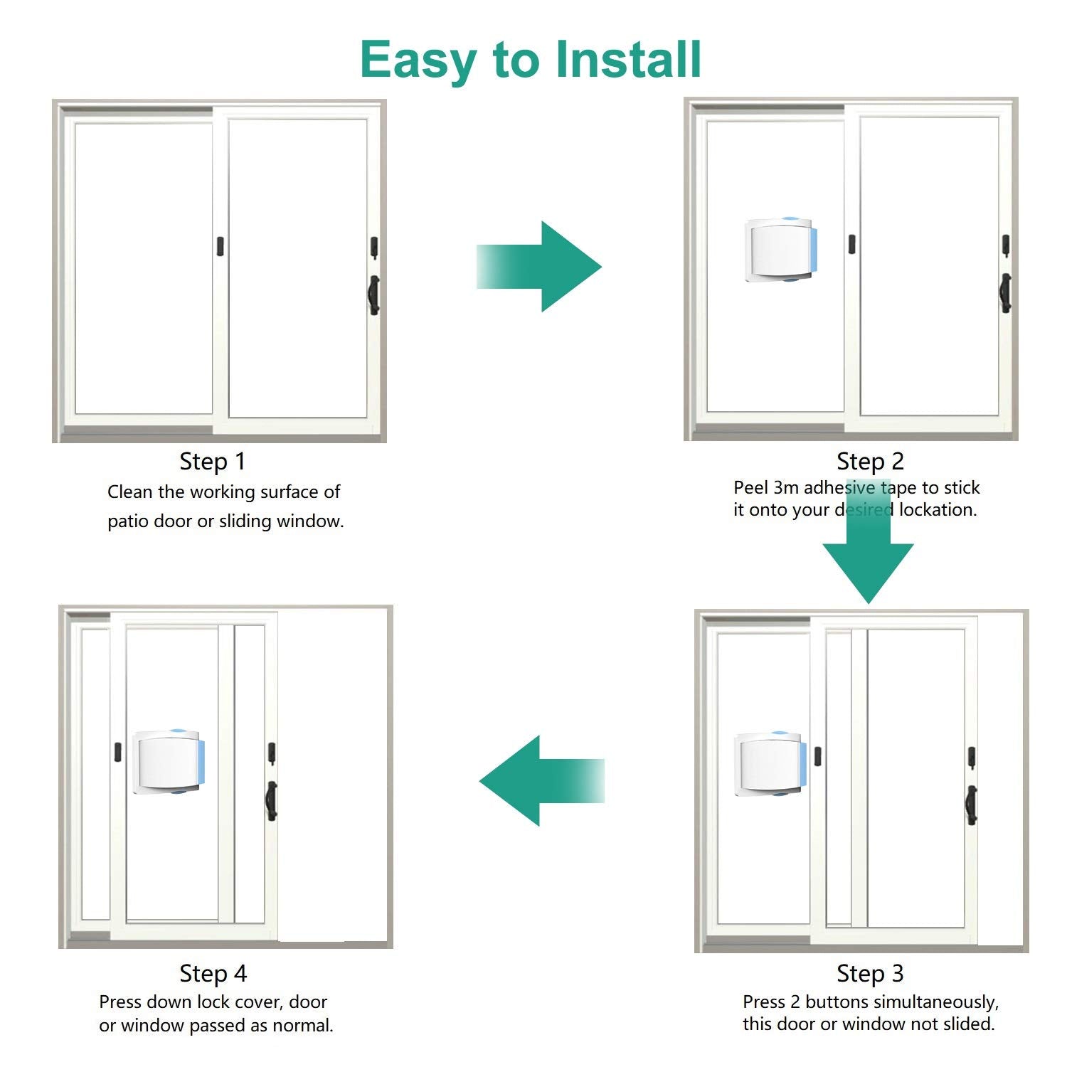 - SIMPLE INSTALLATION – Installing sliding door lock has never been this easy, no drilling tools needed! Simply clean the working area for this lock, peel off 3M tape and stick this device onto the desired location of sliding doors for your patio, closet, cabinet as well sliding window!