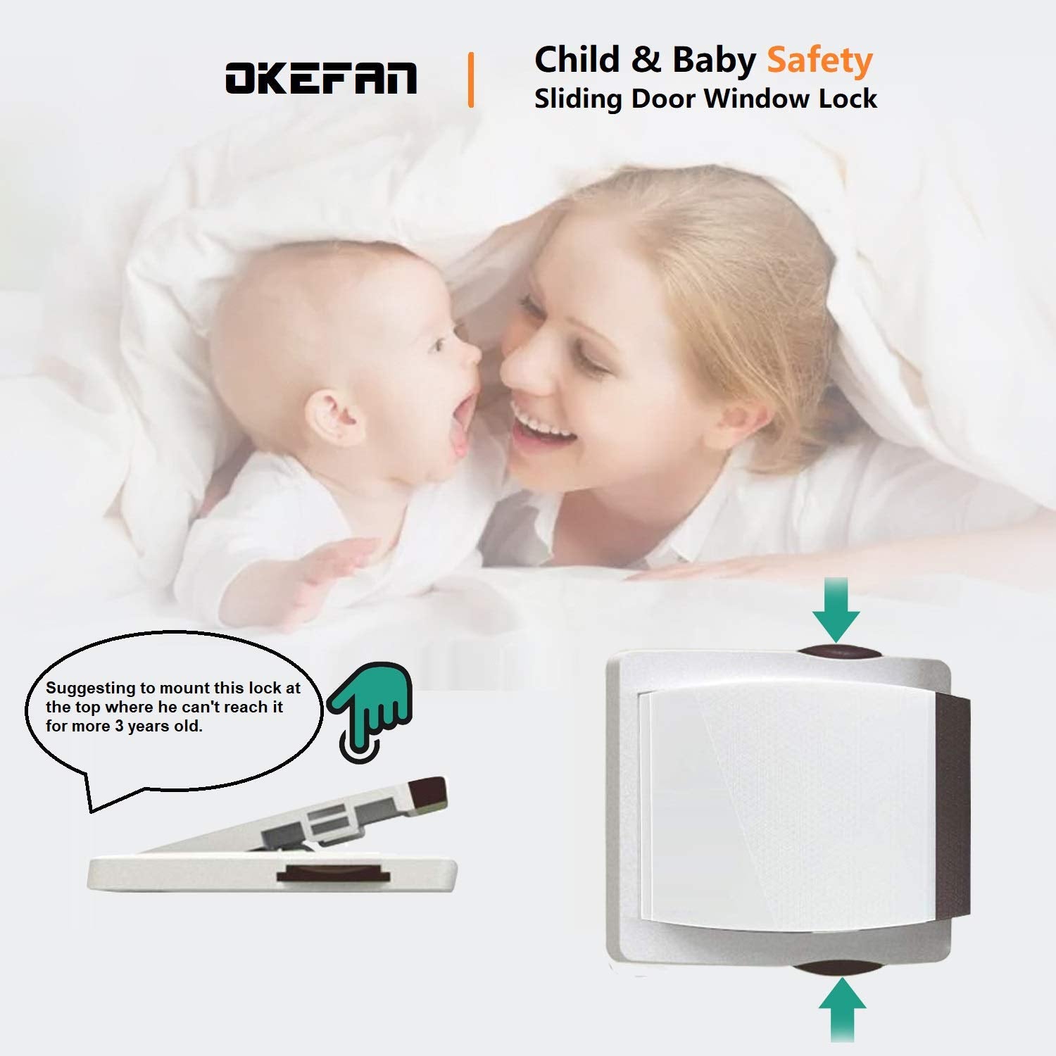 Sliding Glass Door Child Lock - OKEFAN 4 Pack Baby Safety Slide Window Locks for Kids Proof Patio Closet Doors No Drilling Tools Needed (Coffee)