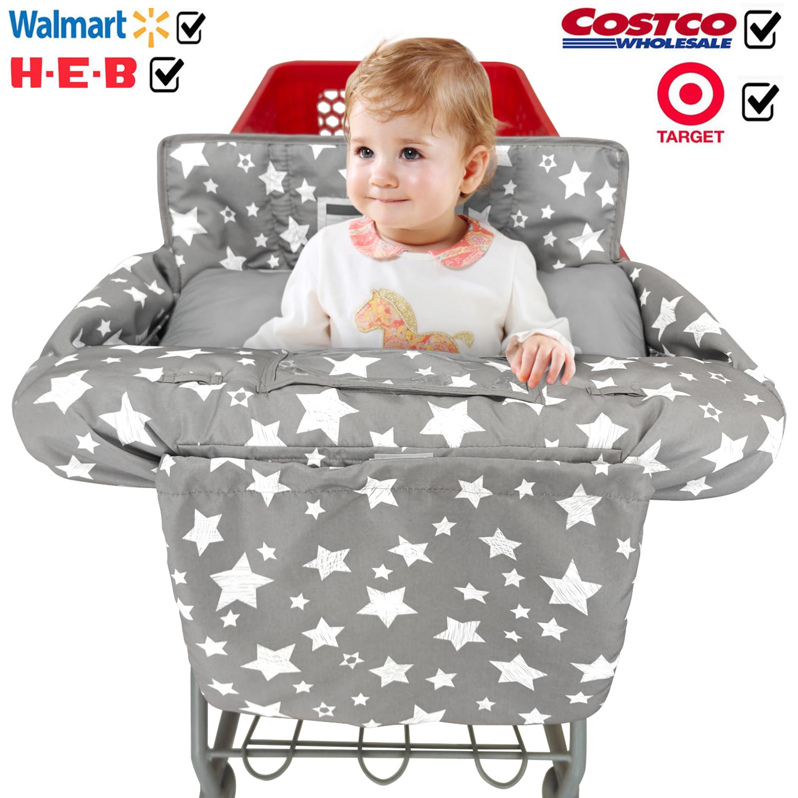 - Universal fit on every high chair and shopping cart like Target and Costco