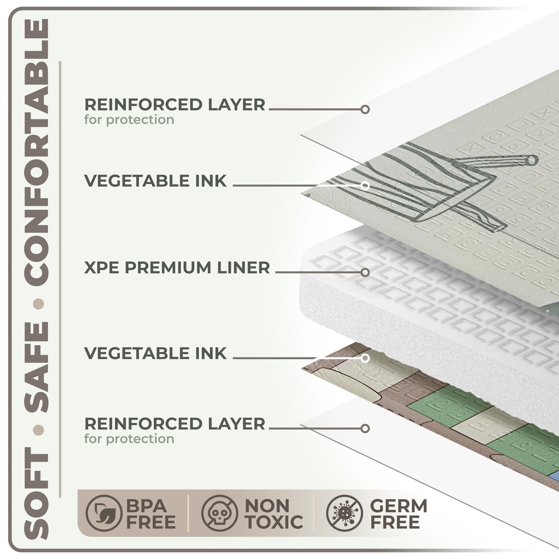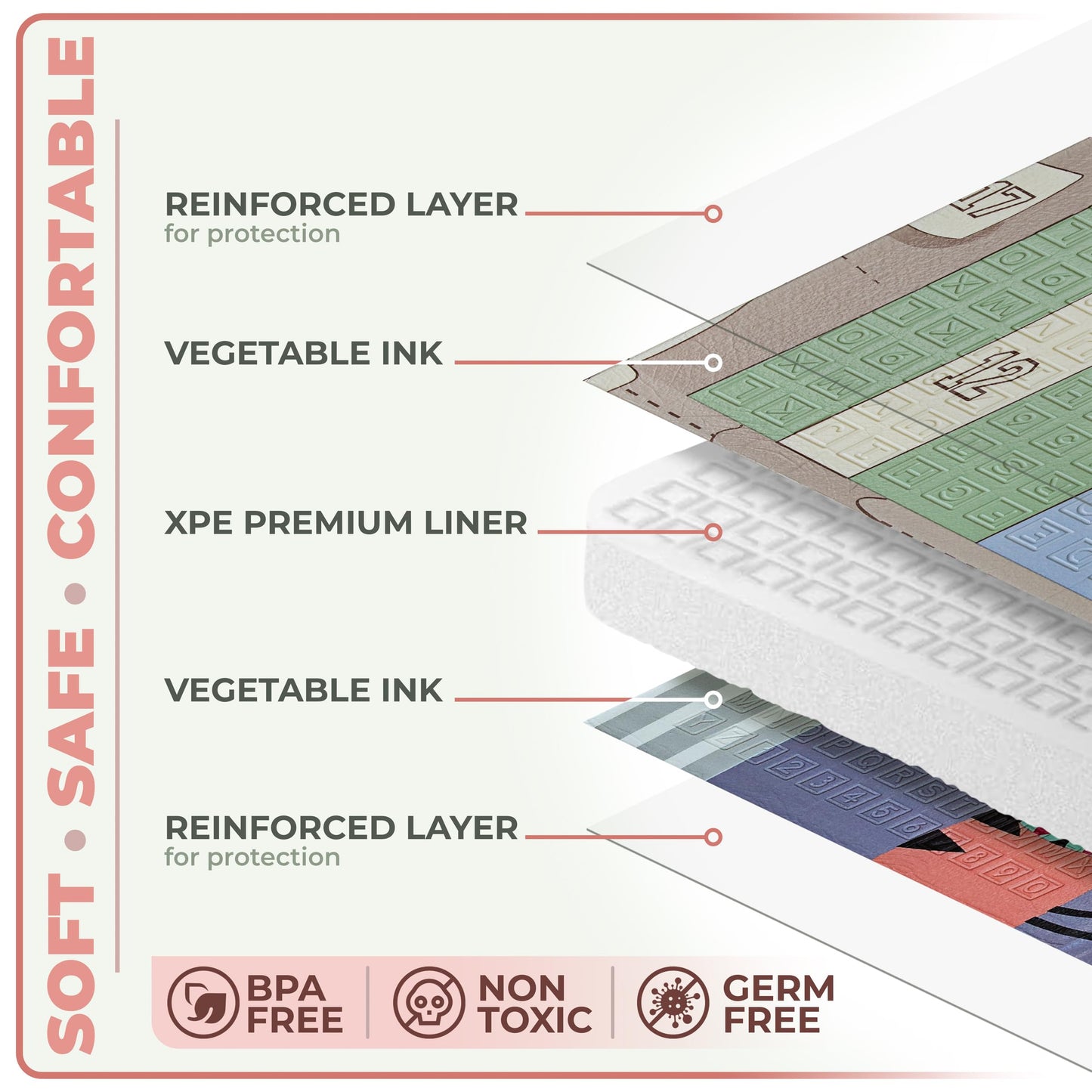 - Lightweight and Portable: Designed for convenience, our infant play mat is lightweight and foldable. This makes it easy to transport and store your baby foam play mat, allowing you to take the fun anywhere.