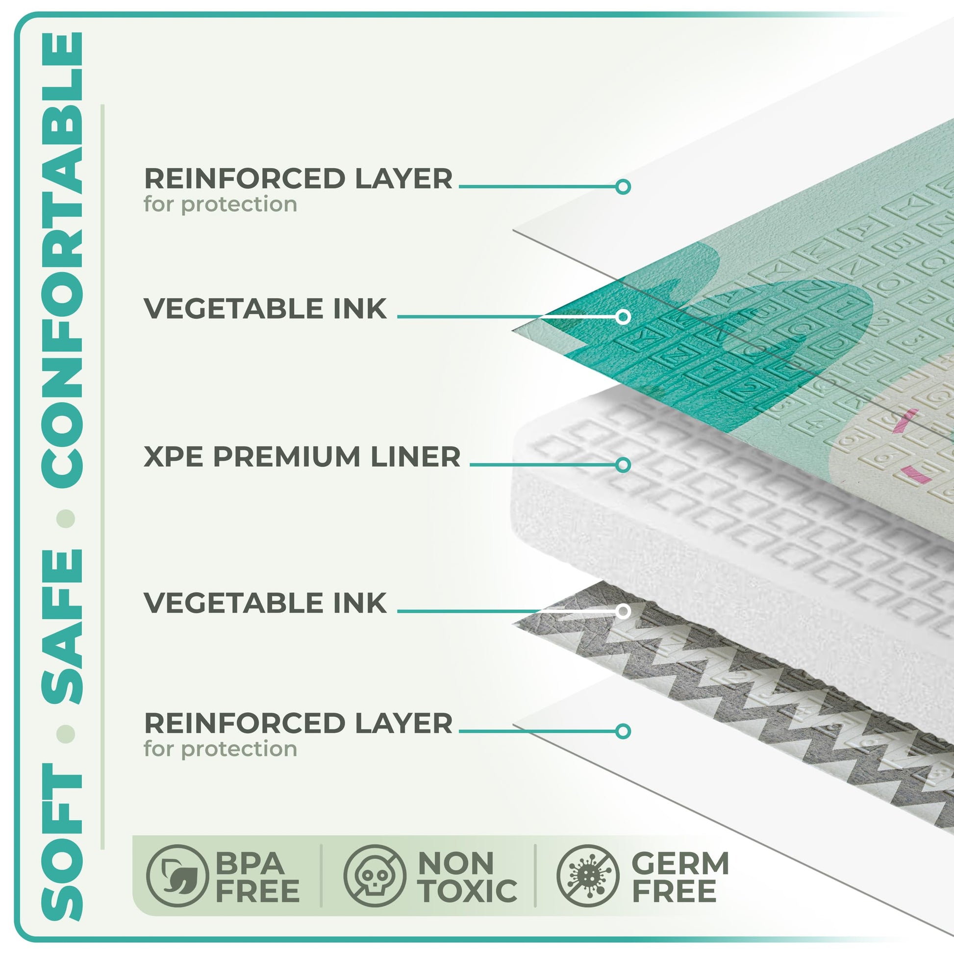 Material | foam playmat, non-toxic baby mat for floor, foam play mat for baby, Waterproof baby play mat, Non-Slip foam mat, foam mats for kids, anti-scratch baby play mat, Rubber baby mat, high-density, baby floor mat, water-resistant, baby gyms & playmats, XPE foam play mat, play mats for floor See more |