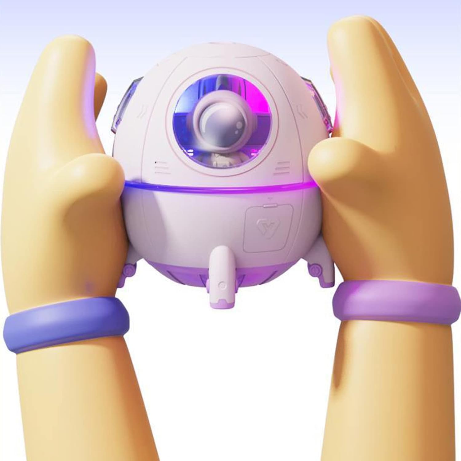 - Cute Design: The cool mini air humidifier for bedroom has a unique space capsule exterior, and the built in cute doll is enjoyable, its own sense of space atmosphere with colorful lights is for baby and kids.