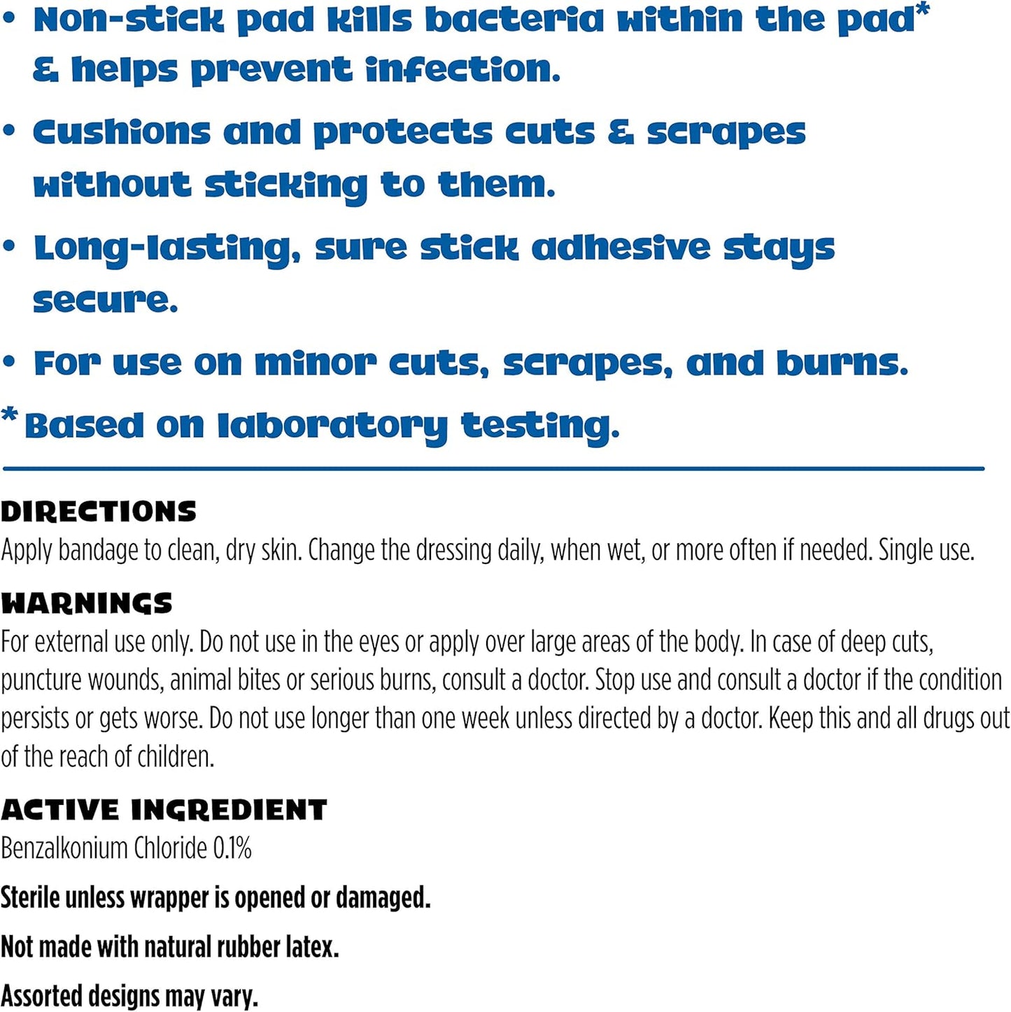 - KIDS ADHESIVE BANDAGES. 100 bandages for use on minor cuts, scrapes & burns