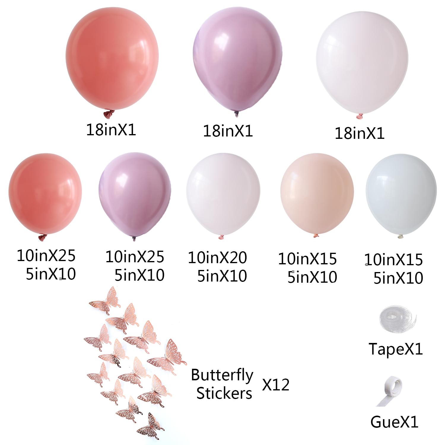 Includes a variety of balloons in dusty pink, pastel pink, pastel blue, ivory white colors
